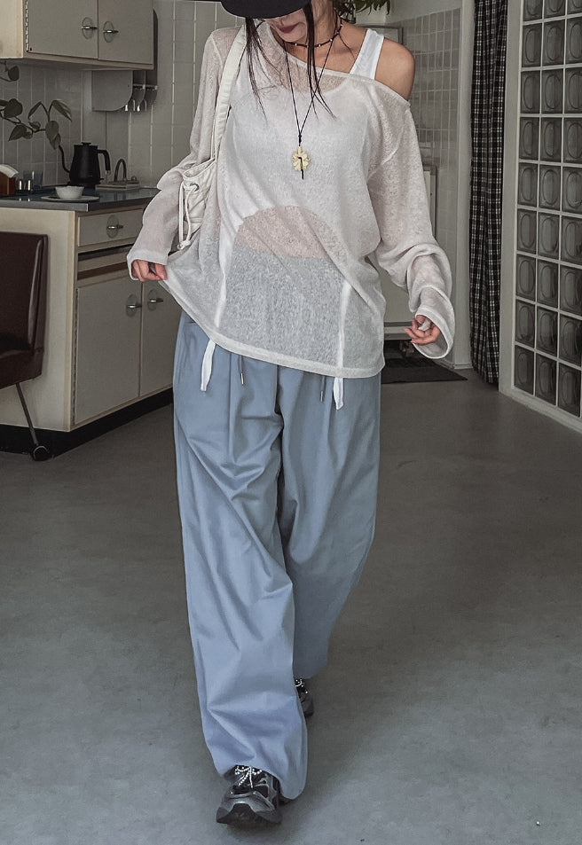 -ONE SIZE (ウエスト(ゴム)66 ヒップ128 股上35 股下67 もも周り74 裾周り56 総丈102)