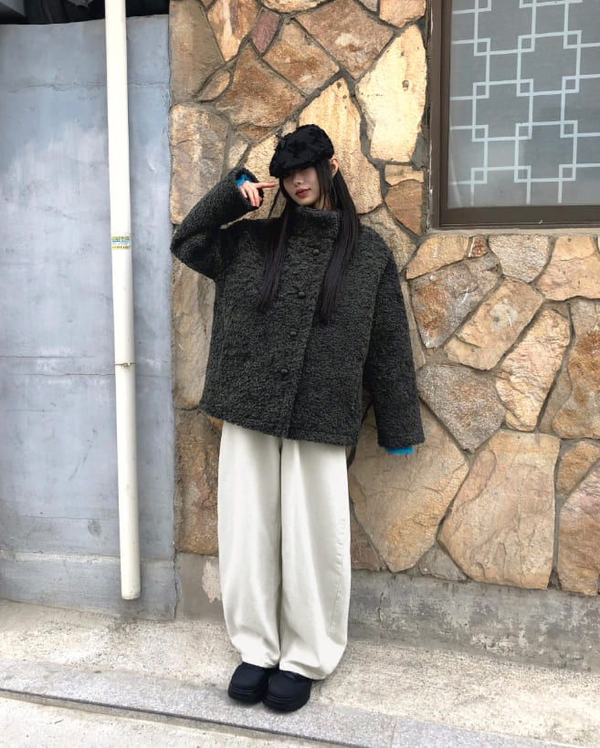 Cumin Fleece Cross Stud Balloon Wide Pants
