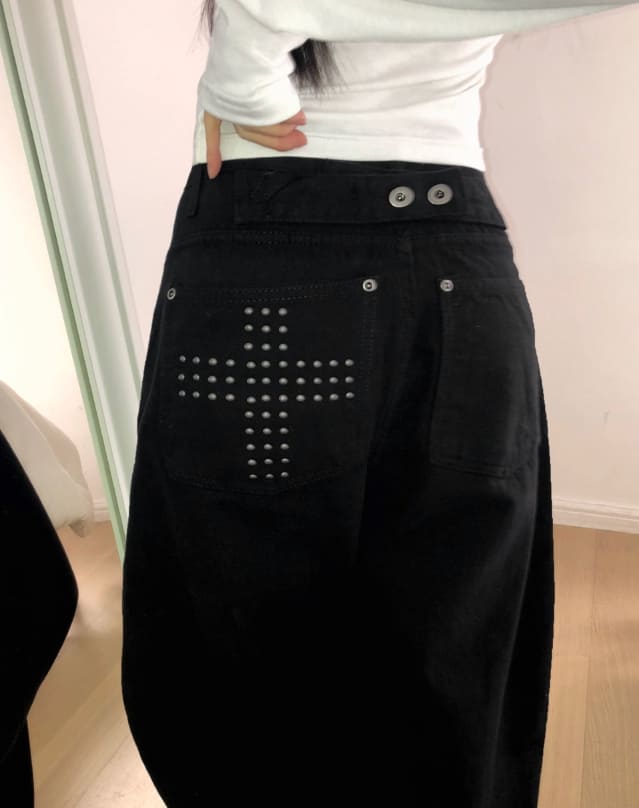 Cumin Brushed Cross Stud Balloon Wide Pants