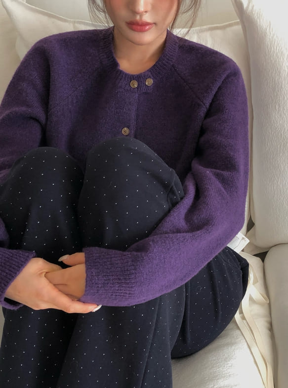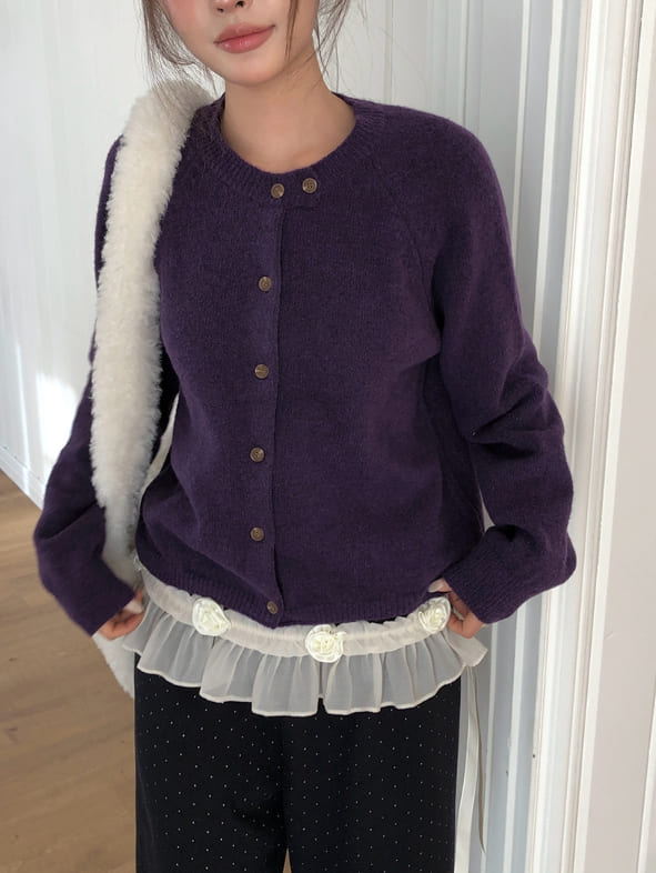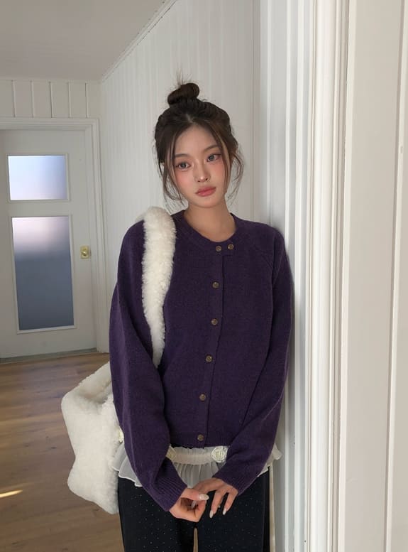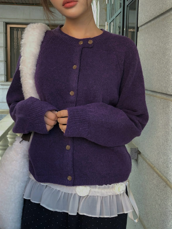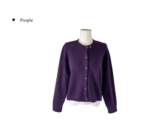 Feature Button Round Wool Knit Cardigan