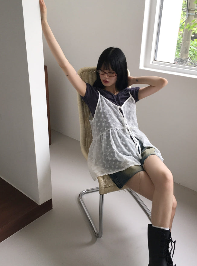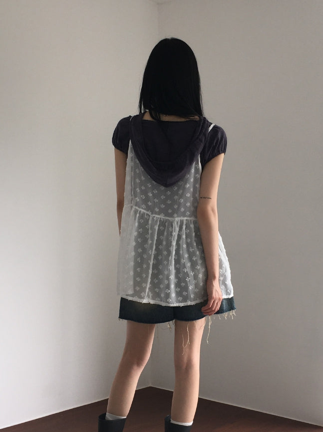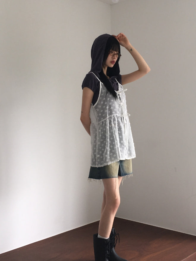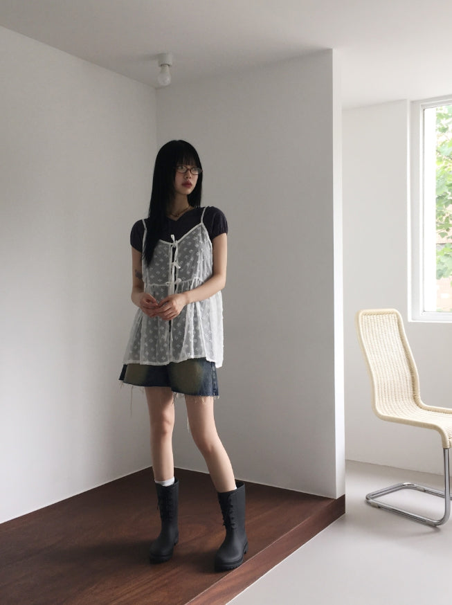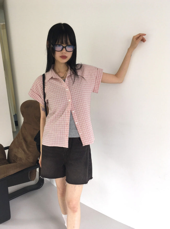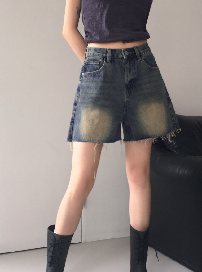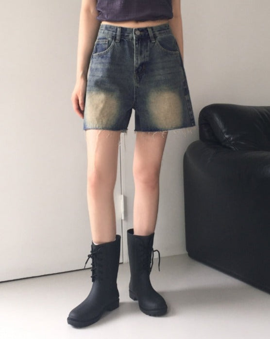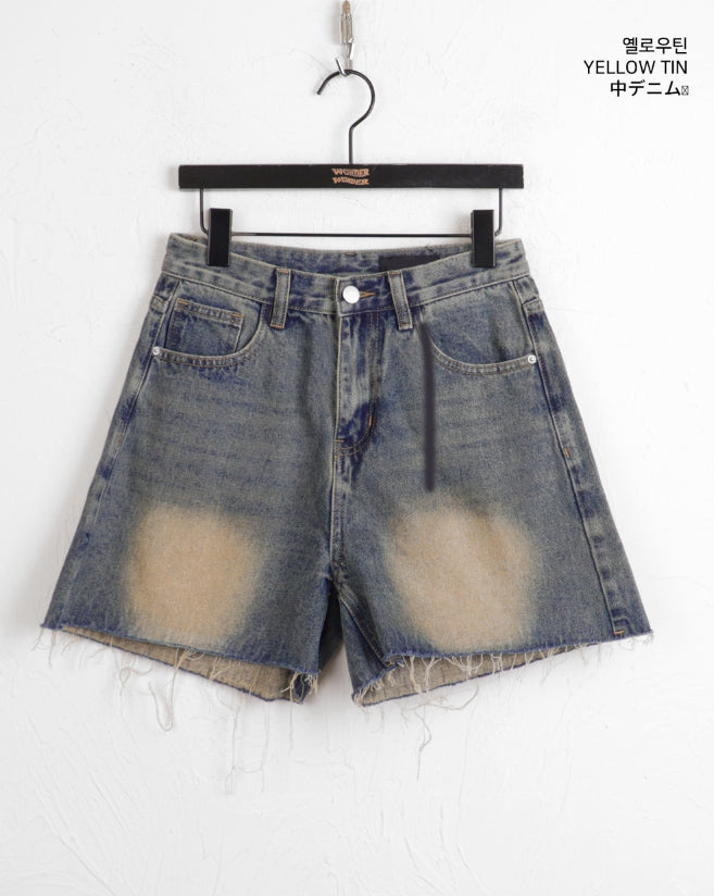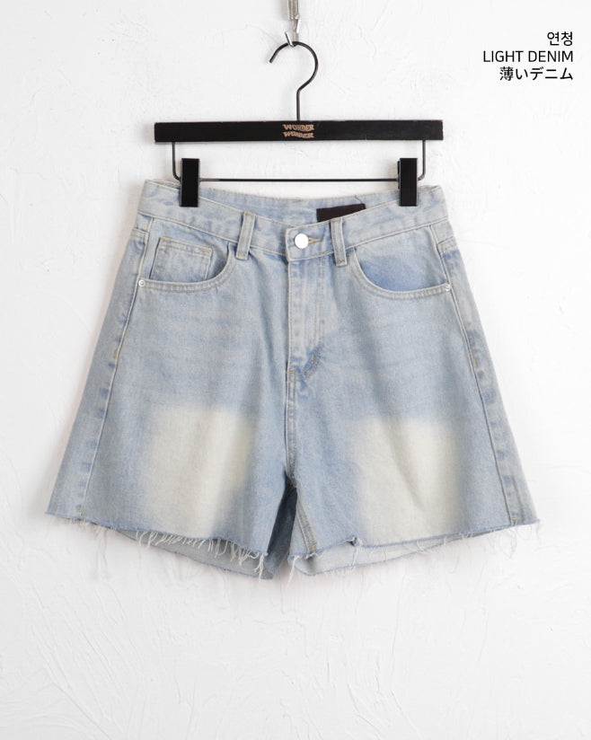 フリットウォッシュ加工3分丈デニムショートパンツ