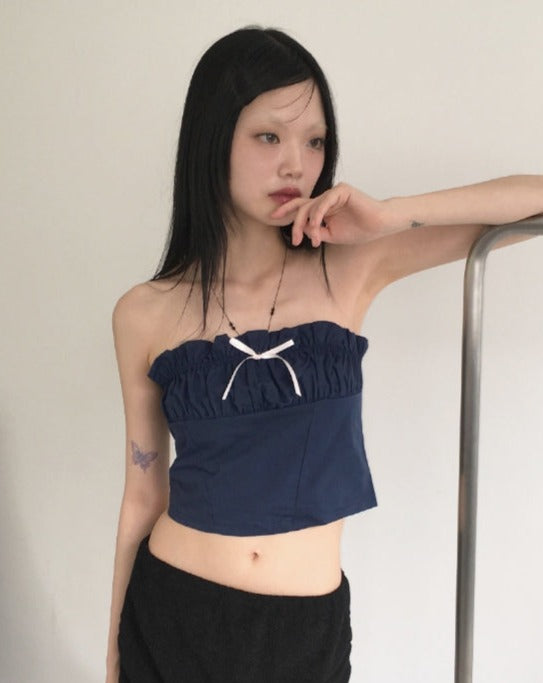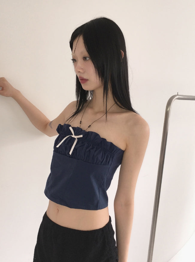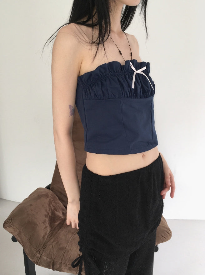 ヒップシーフェスティバルリボンカラーシャーリングスリットチューブトップ