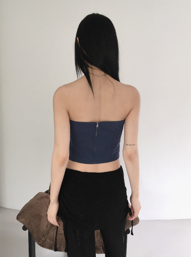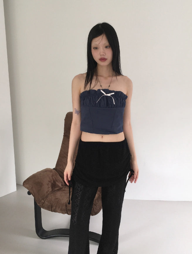 Hip Hop Festival Ribbon Coloring Shirring Slit Tube Top