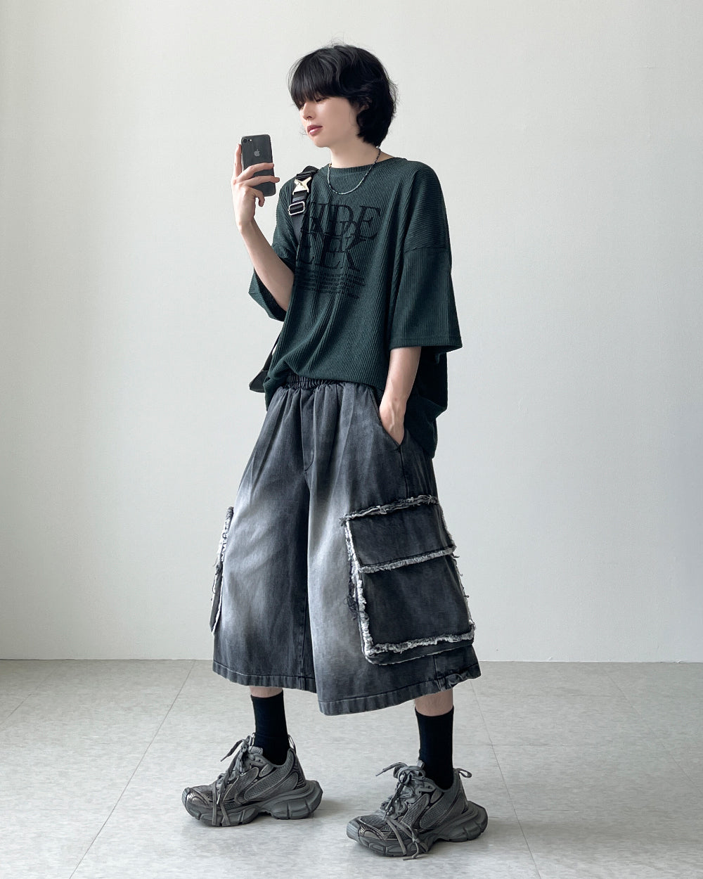 -ONE SIZE (ウエスト(ゴム)60-88 ヒップ- 股上32 股下36 もも周り74 裾周り80 総丈68)