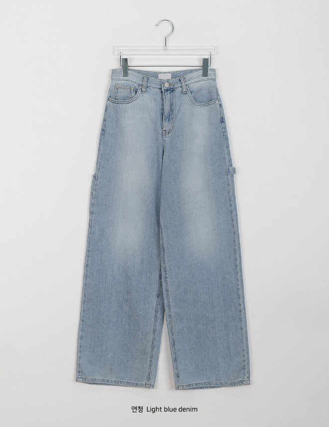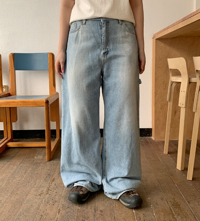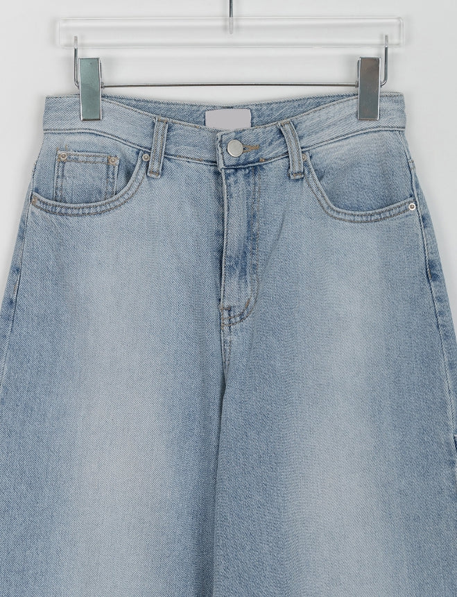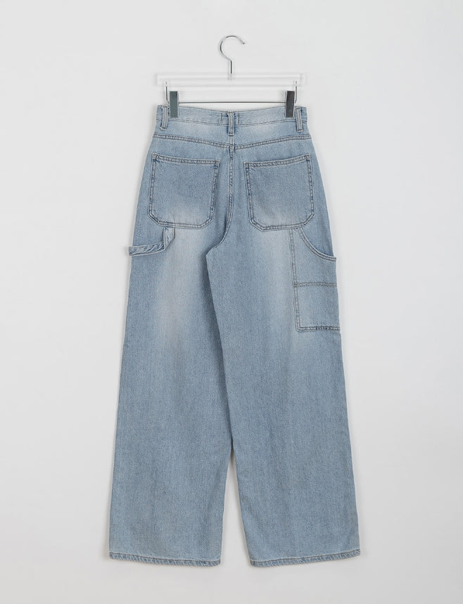 クハカカーフェンダーウォッシングライトブルーワイドデニムパンツ