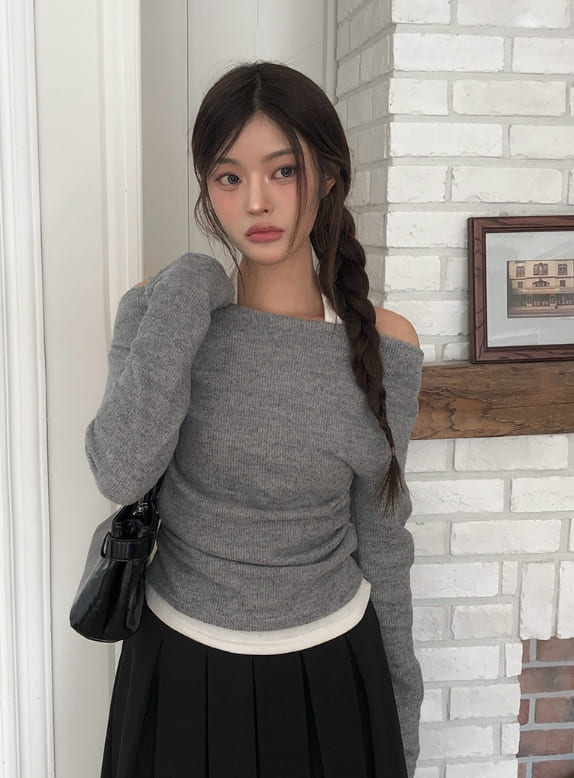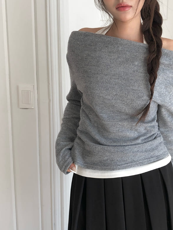Lance Shirring Halter Drape Off-Shoulder Knit