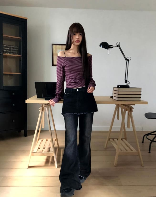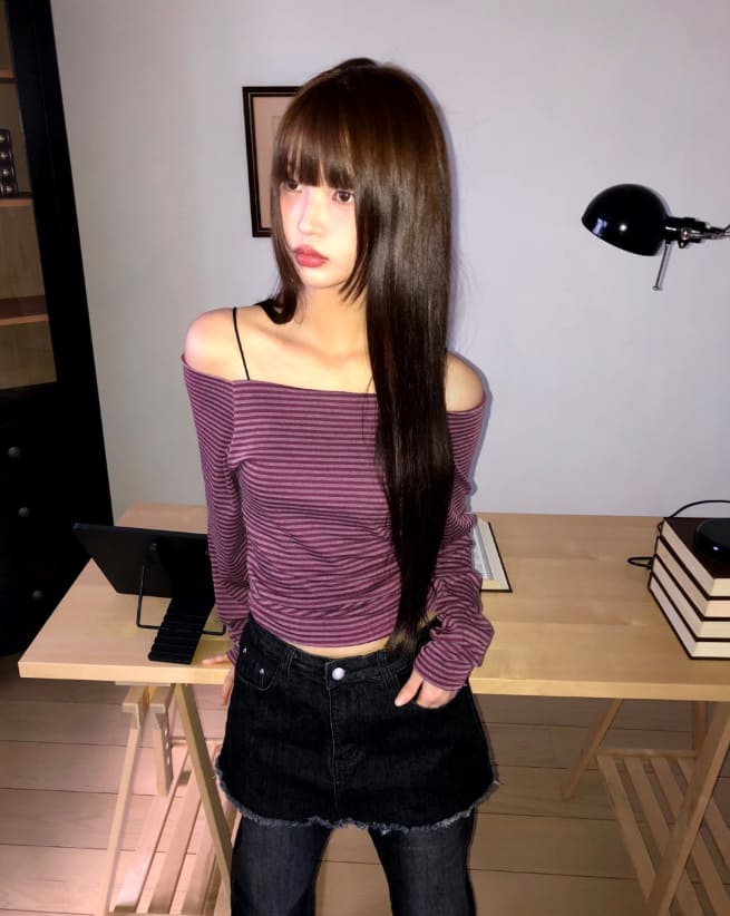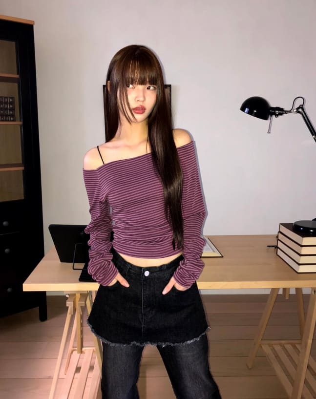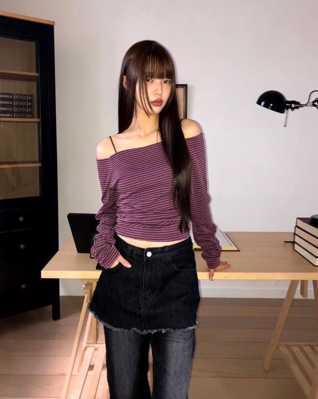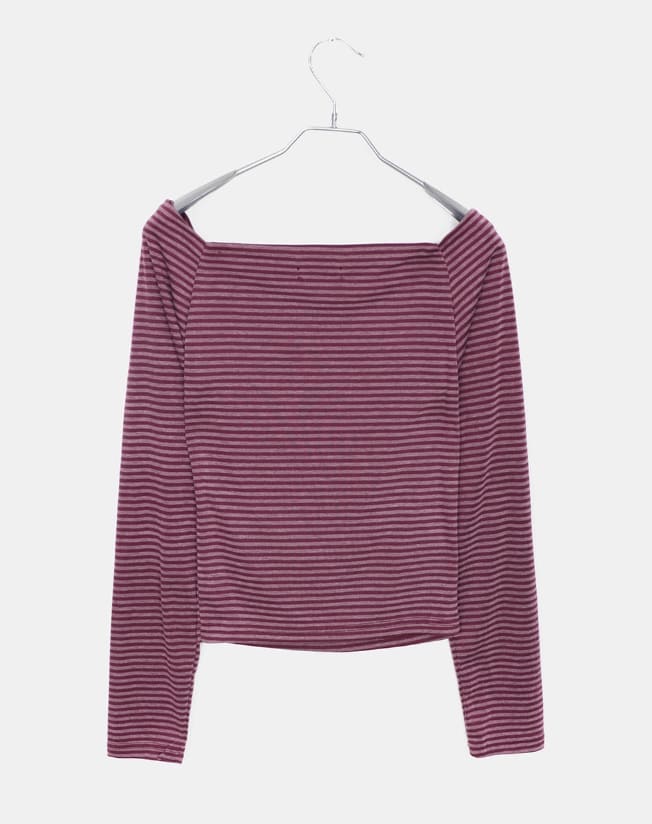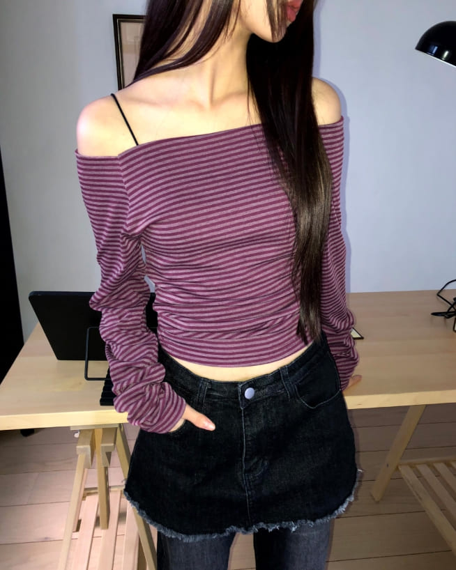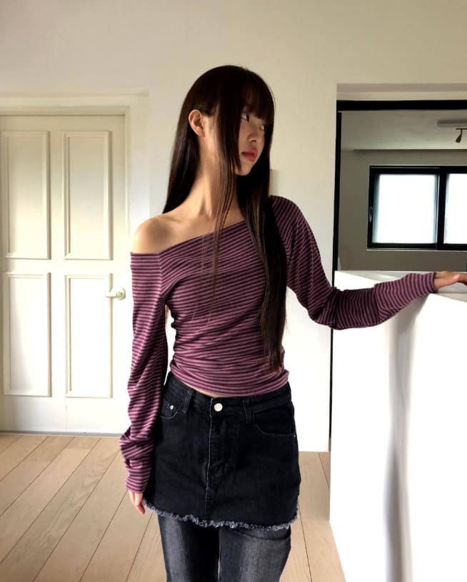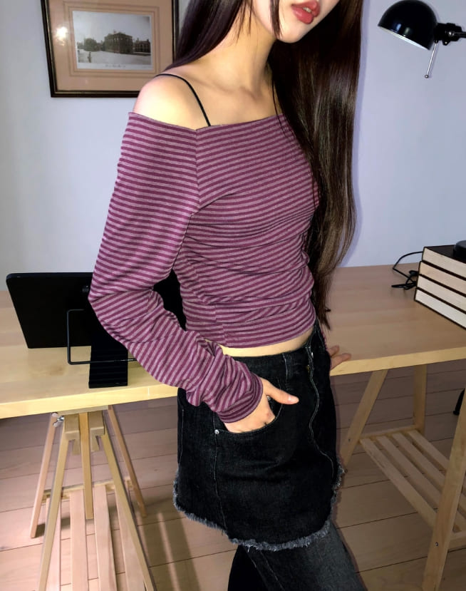 Leza Striped Off-Shoulder Long-Sleeve T-Shirt