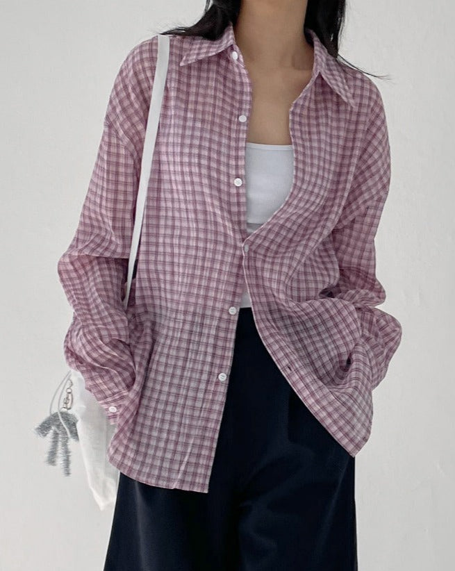 リネンギンガムチェックオーバーフィットシャツ