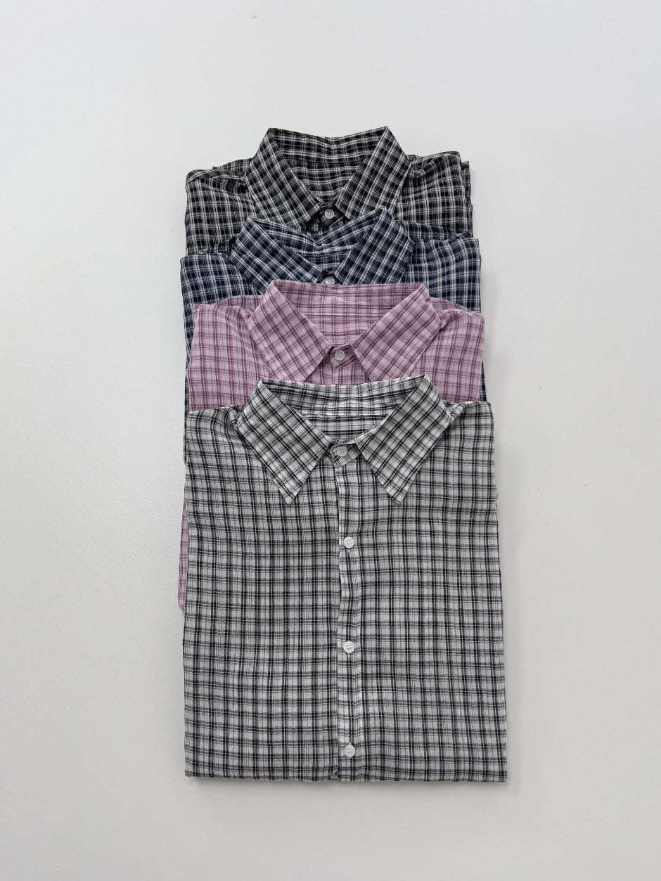 Linen Gingham Check Overfit Shirt