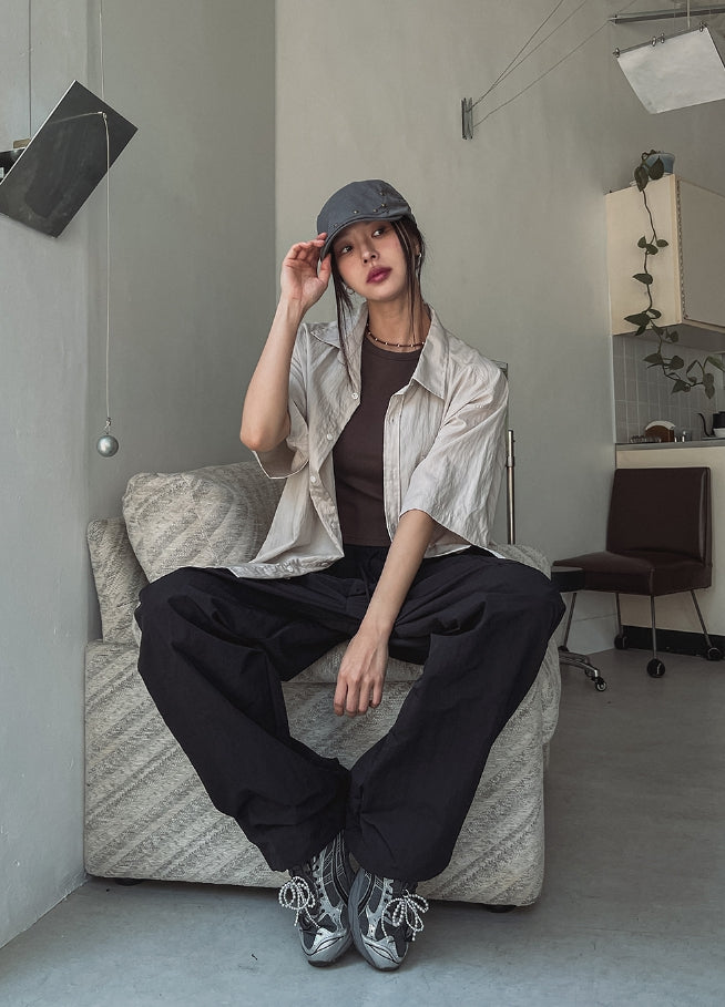 -168cm, top 55size, bottom 27(M), Chracoal, Black