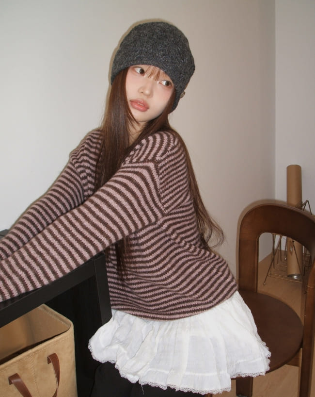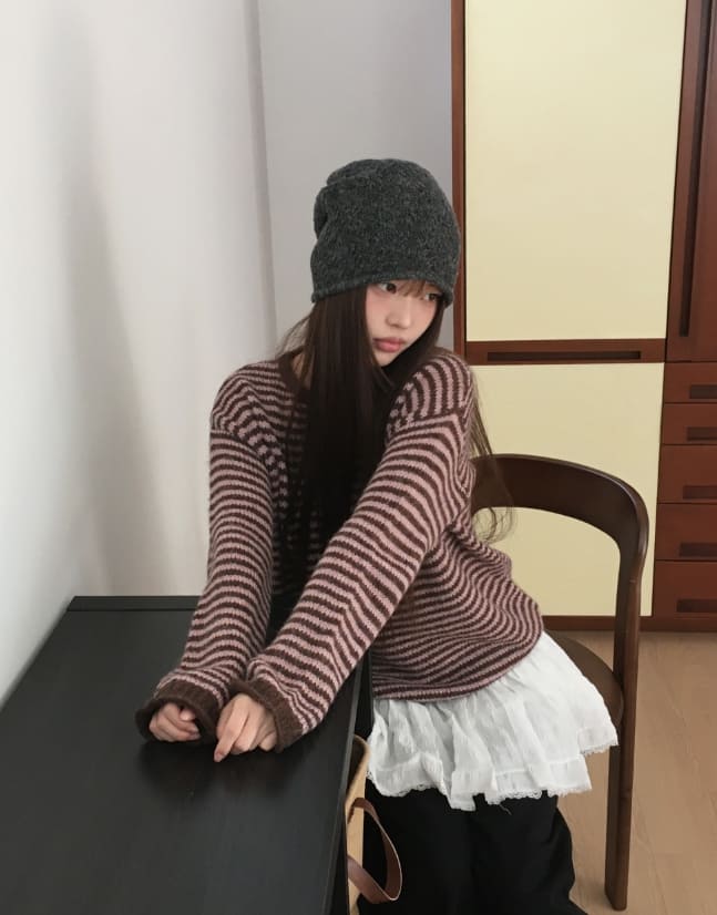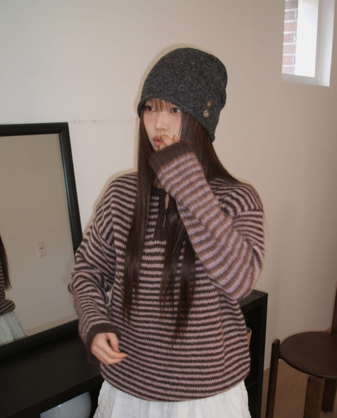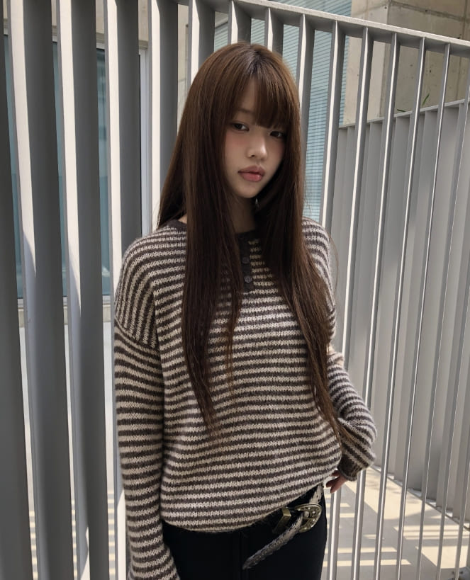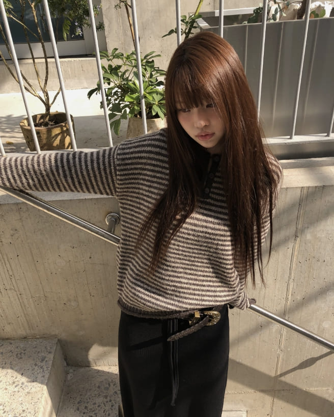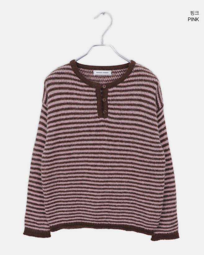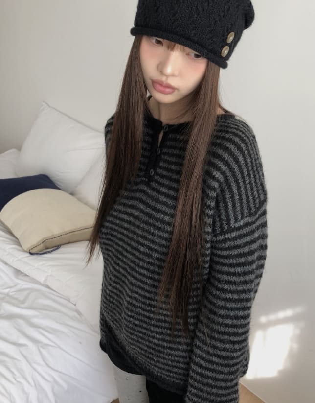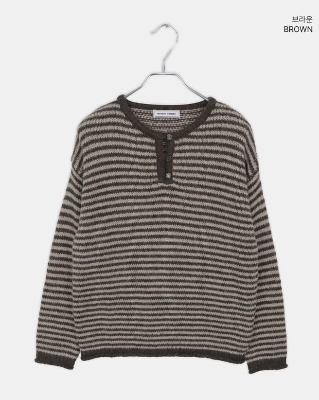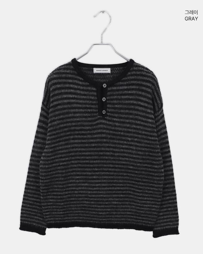 [MADE] Aeon Stripe Henley Neck Button Knit