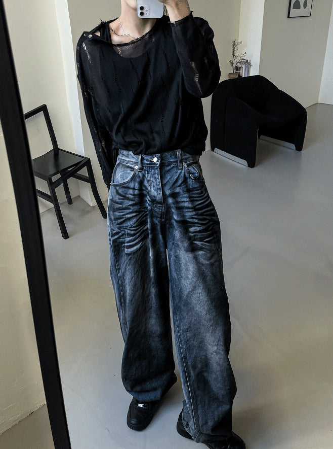 マッドウォッシュ加工デニムパンツ