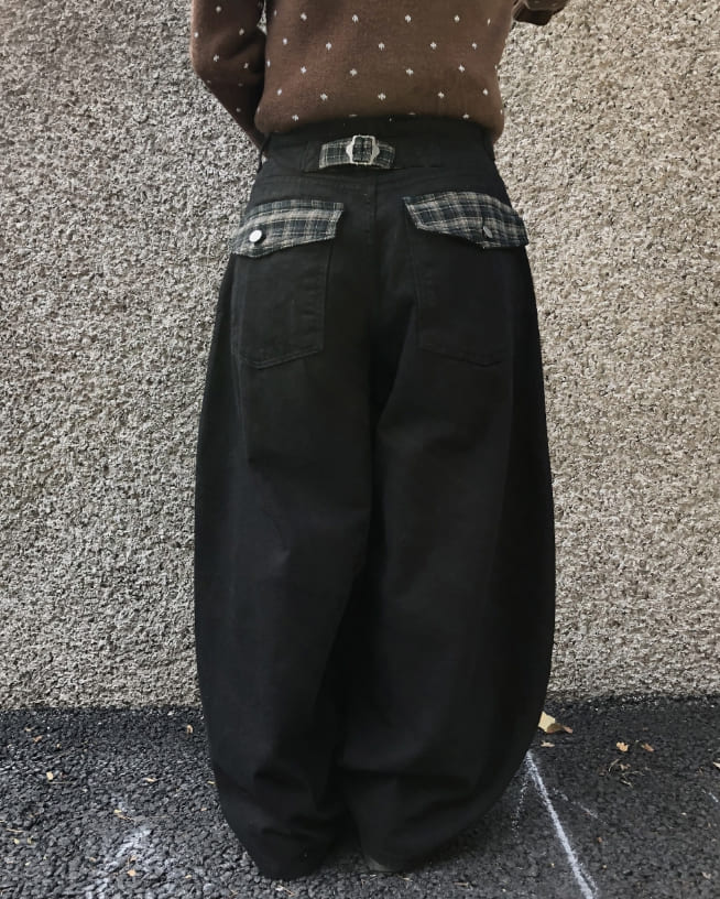 Odi Check Adjust Buckle Brushed Balloon Wide Pants