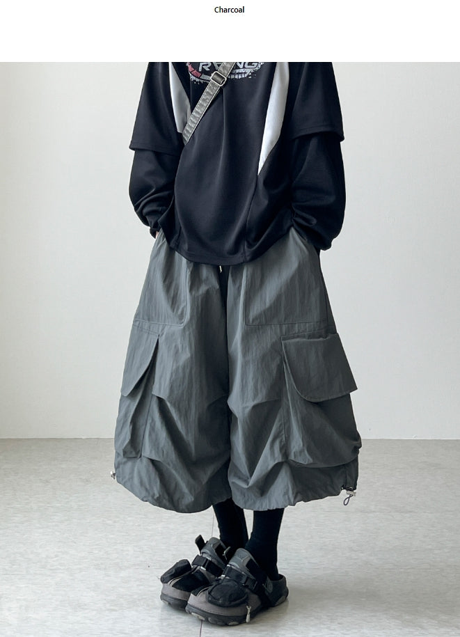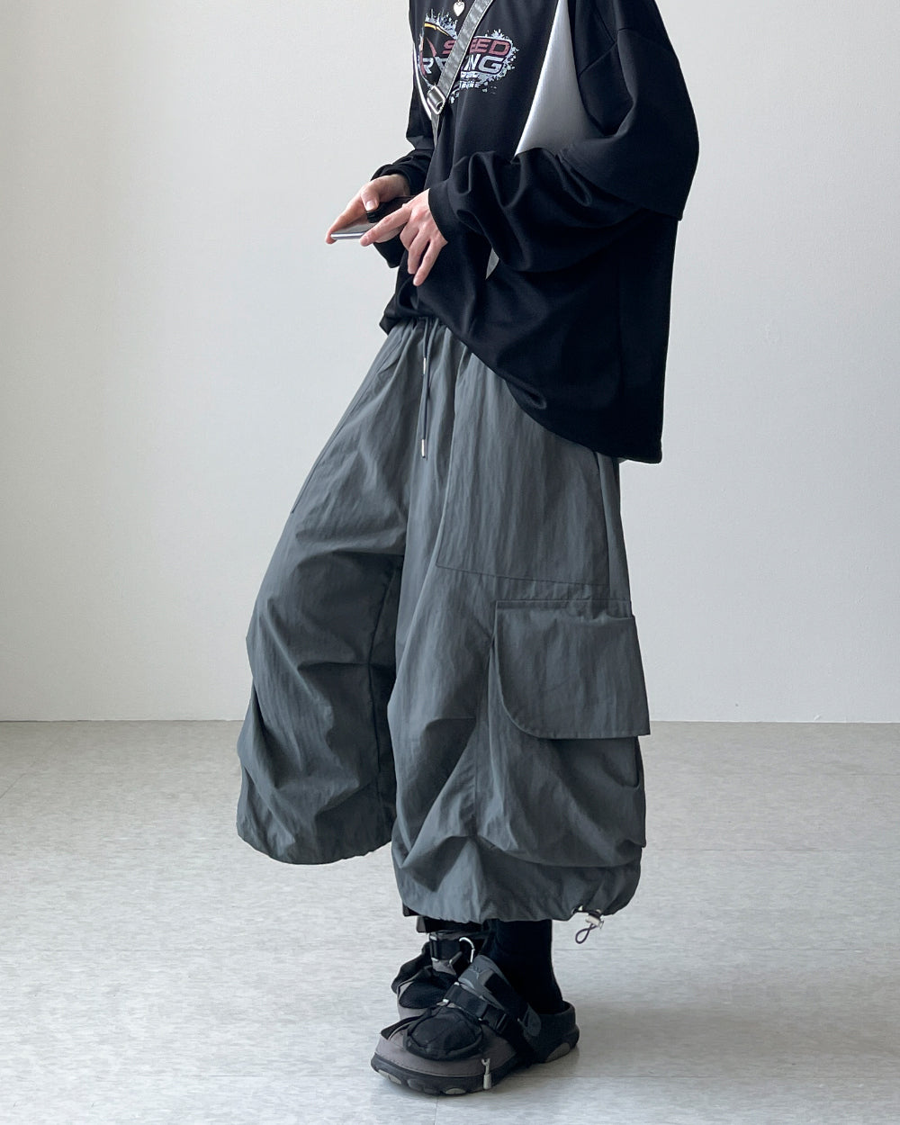 -ONE SIZE (ウエスト(ゴム)70-94 ヒップ- 股上35 股下35 もも周り76 裾周り78 総丈70)