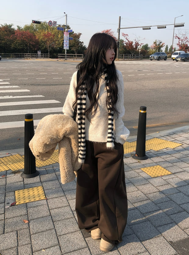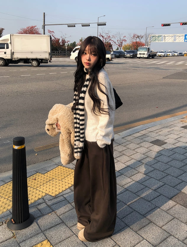 [Planning/Thick Brushed] Alt Pintuck Wide Long Back Pocket Pants
