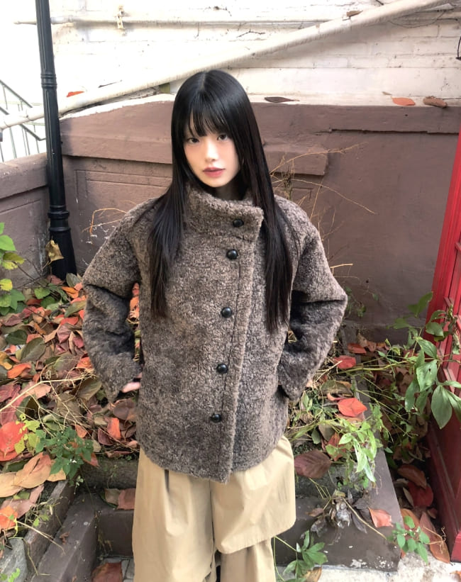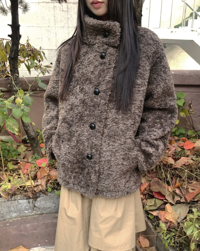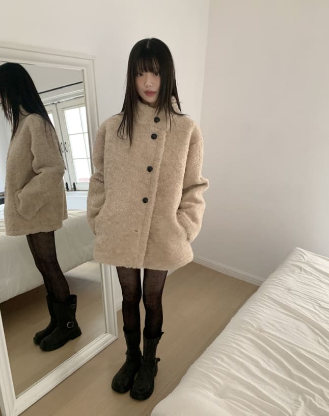 プロンボアハーフネックミディファーコートジャケット