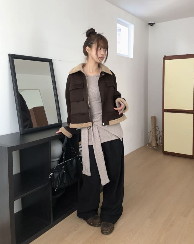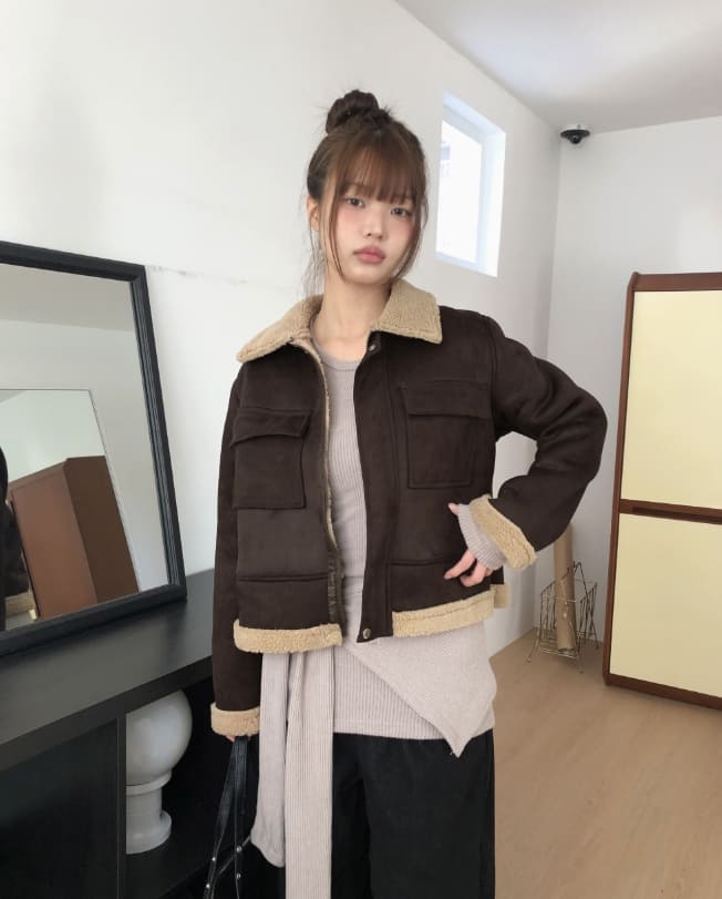 Renee Crop Fleece Big Pocket Mustang Jacket