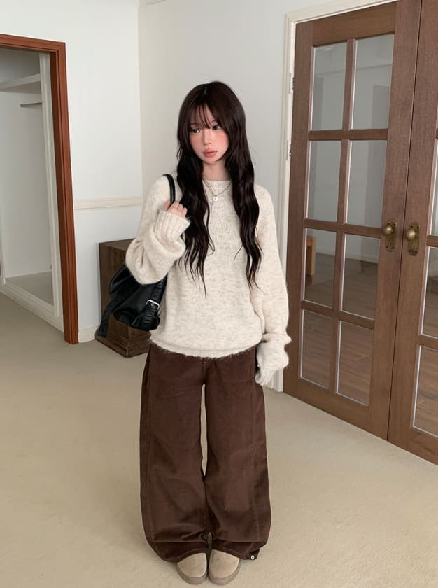 レセムコーデュロイアジャスタースナップワイドパンツ