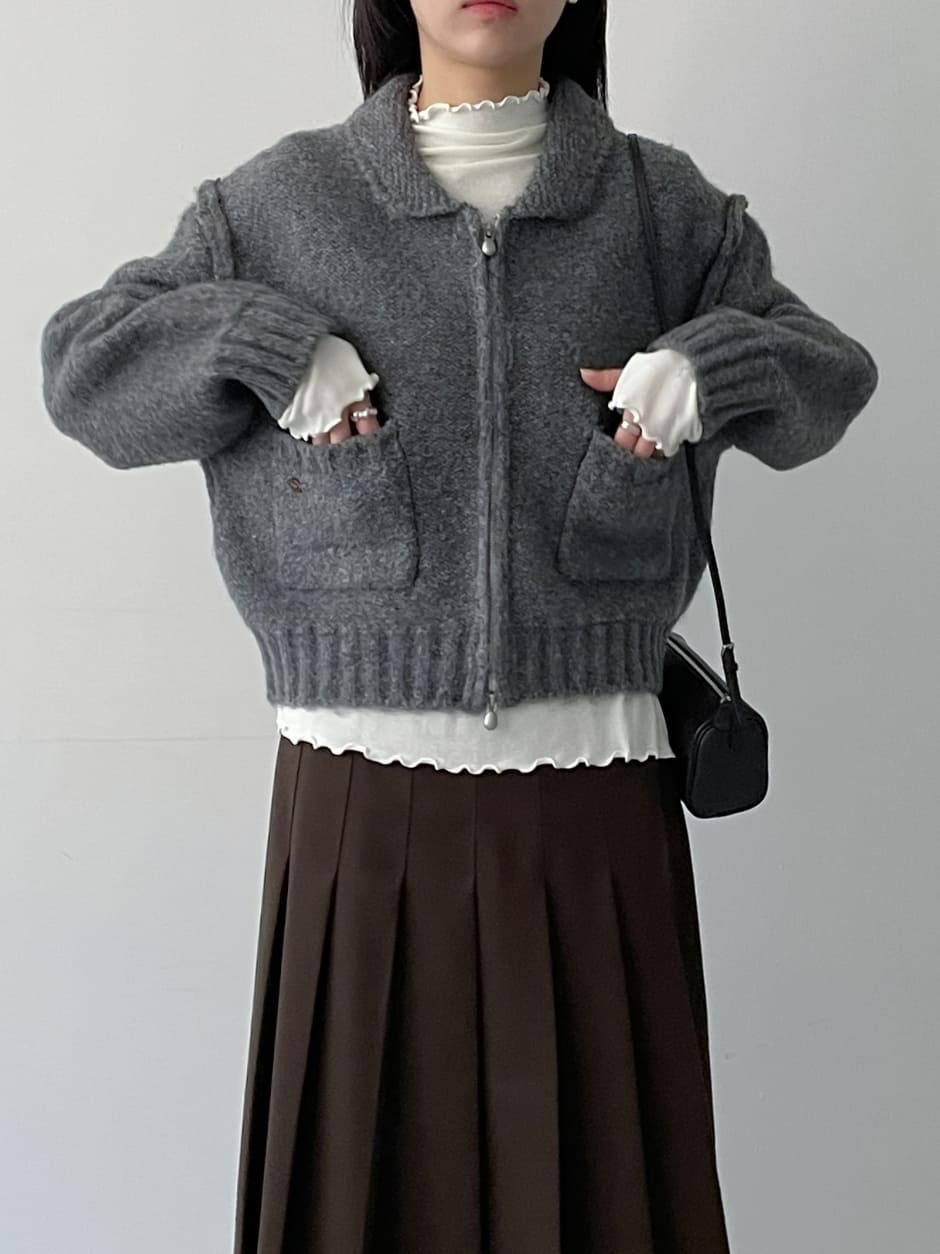 リバースツーウェイクロップニットジップアップ