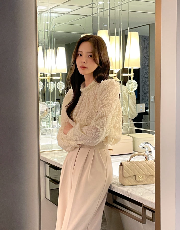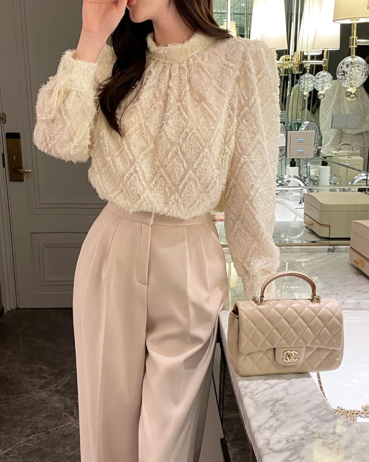 Rielson Tassel Jacquard Puff Shirring Blouse