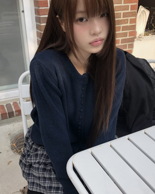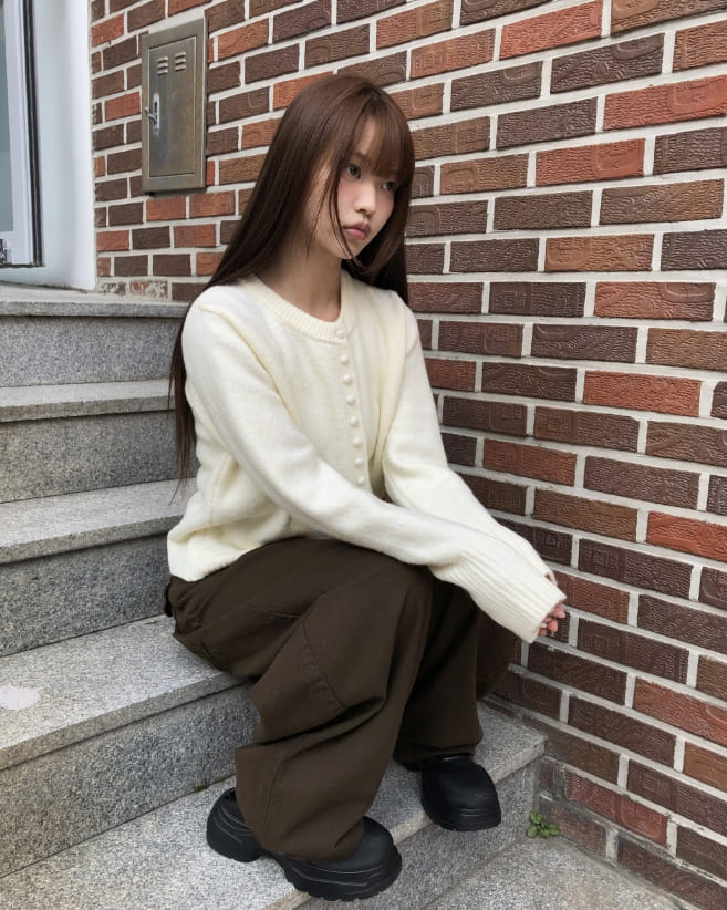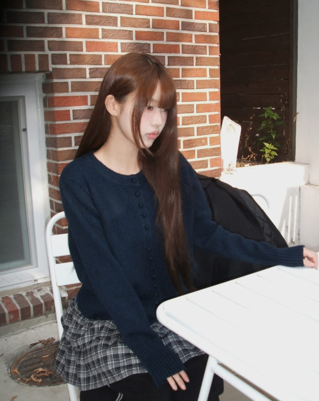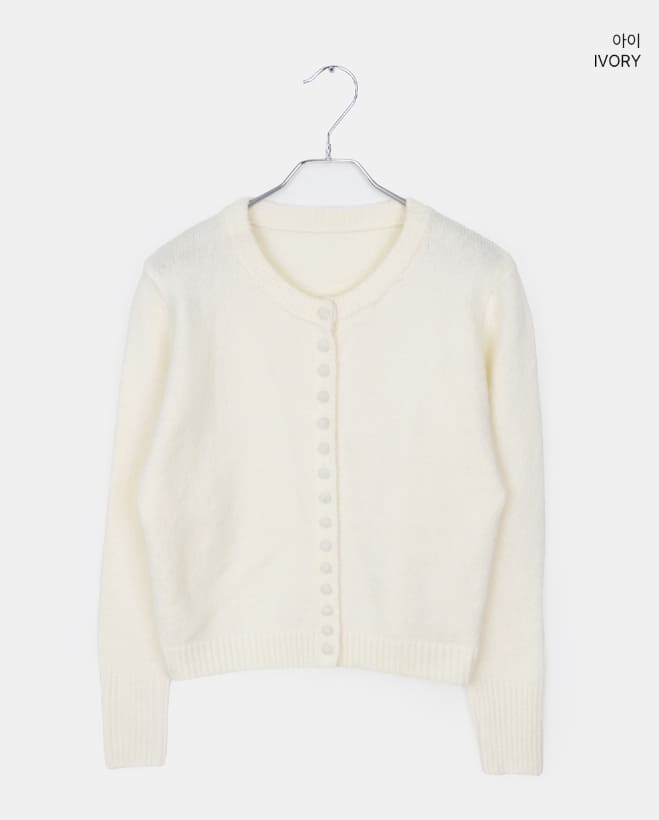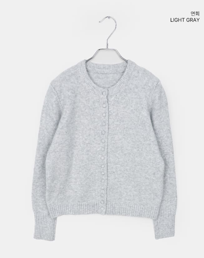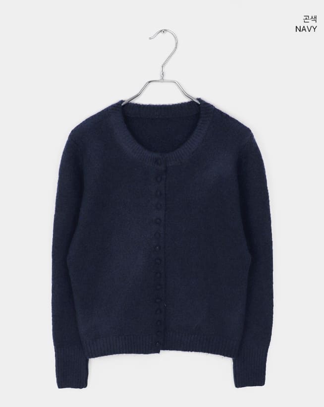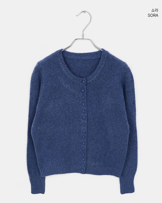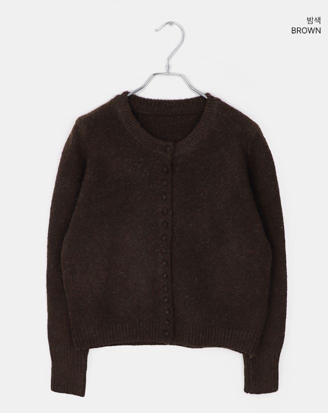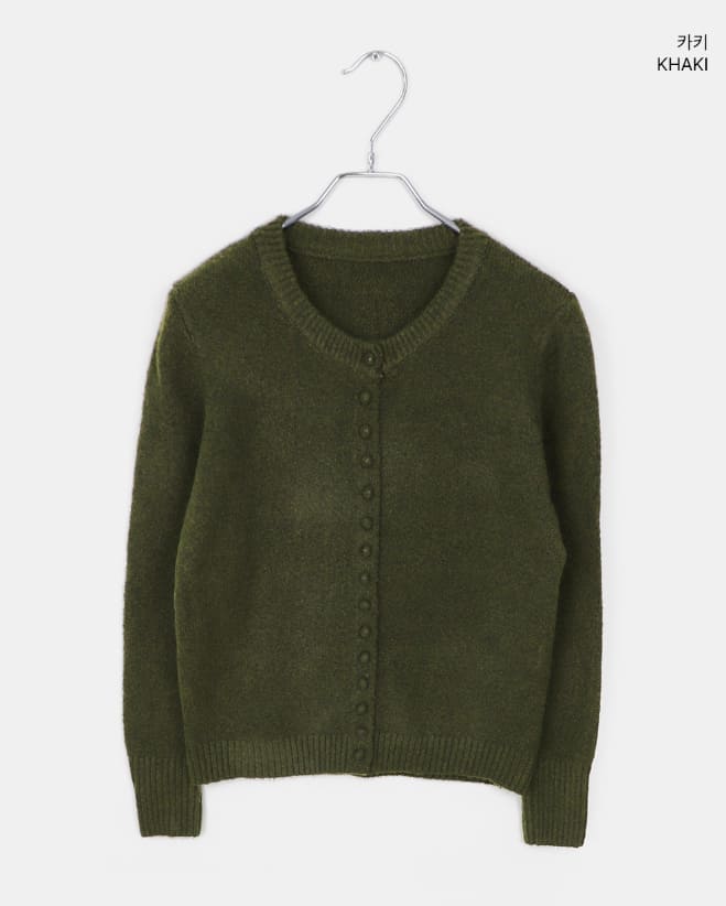 ルシャビーンボタン長袖ラウンドネックカーディガン