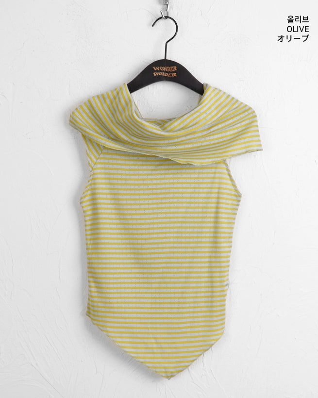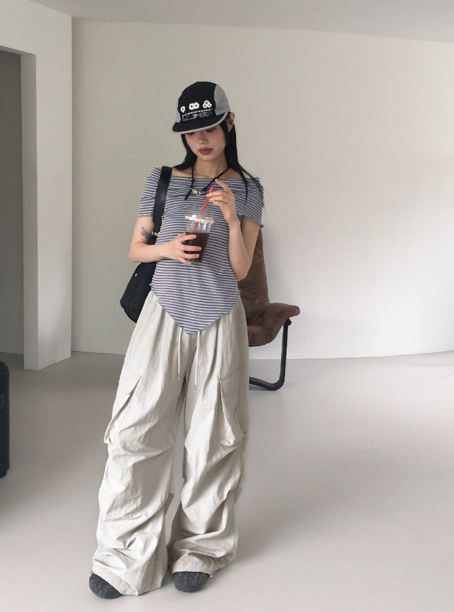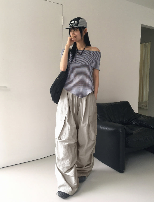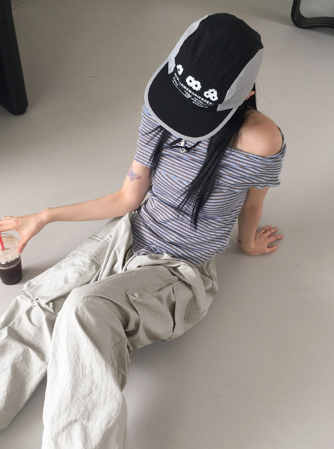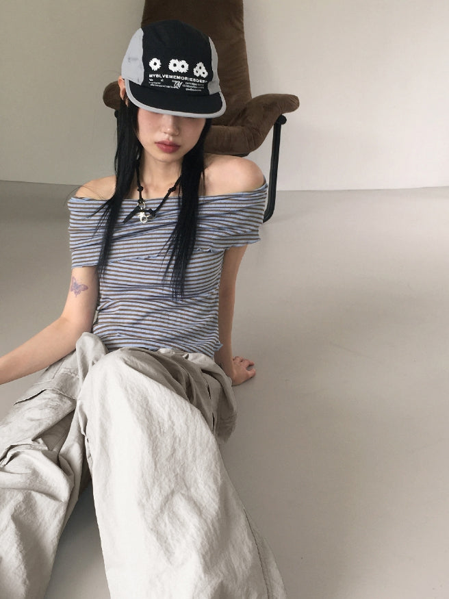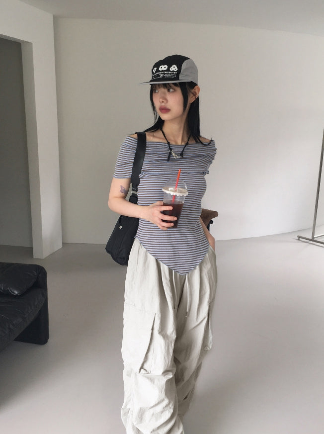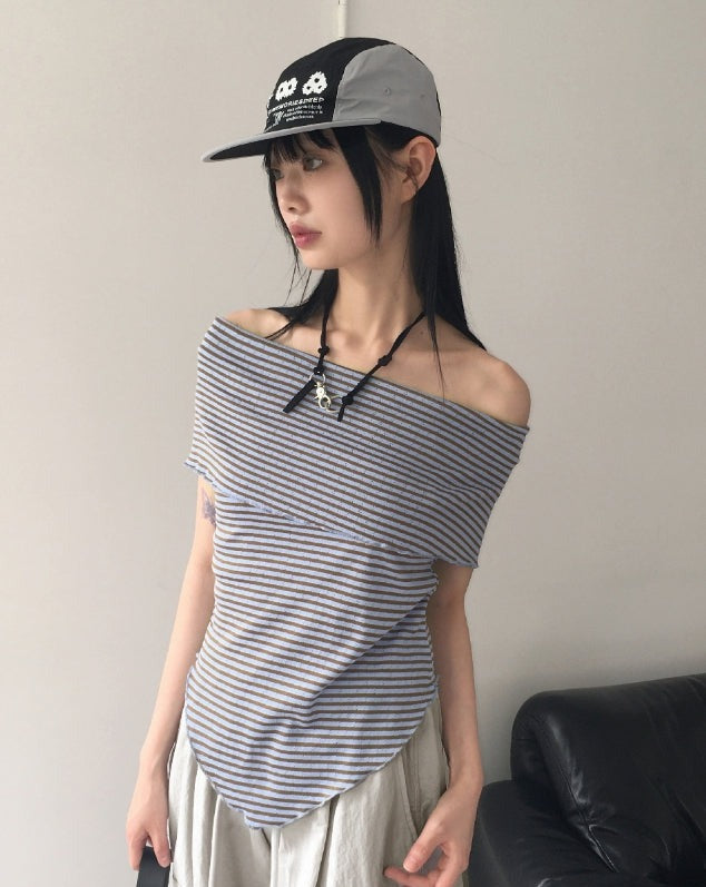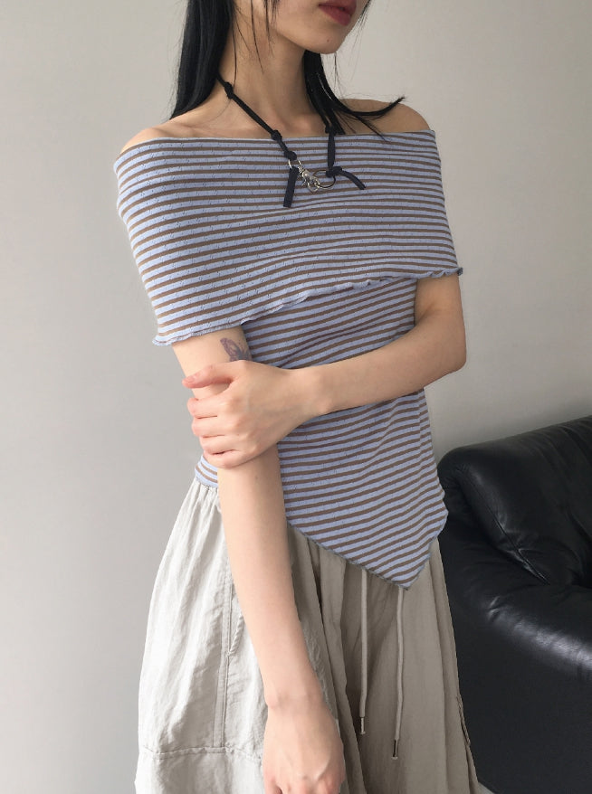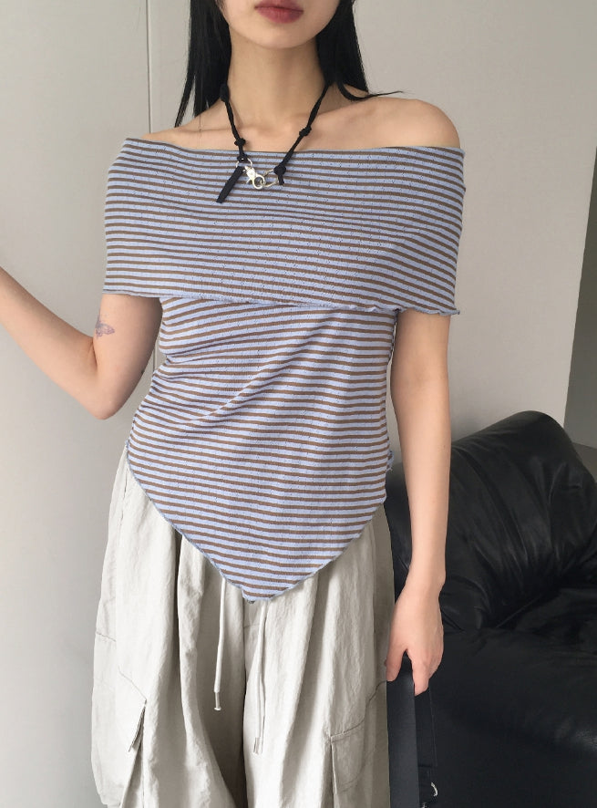 Seby Stripe Diagonal Off-Shoulder T-Shirt