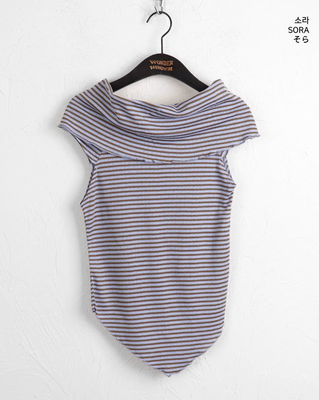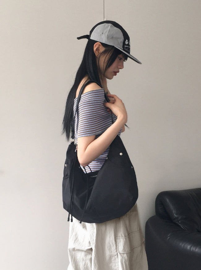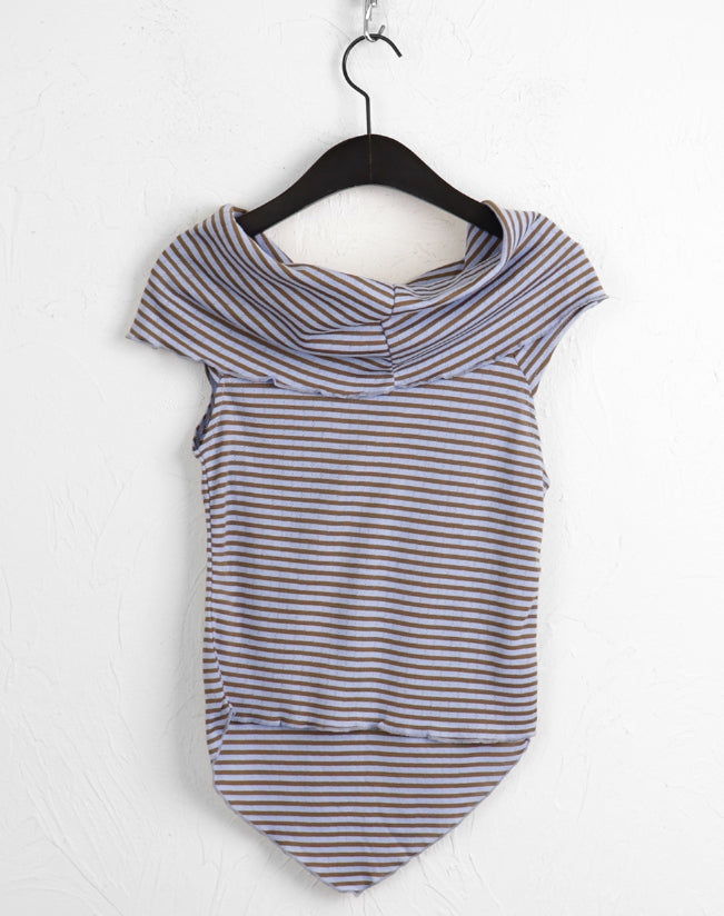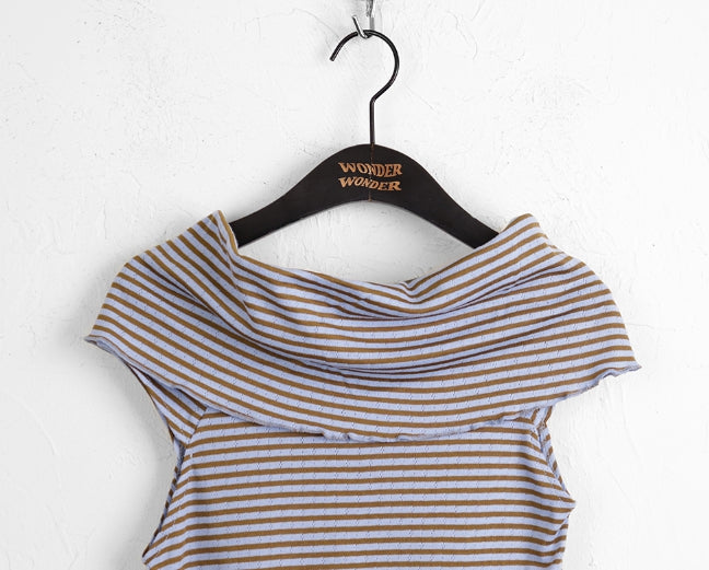 セビーボーダーダイアゴナルオフショルダーTシャツ