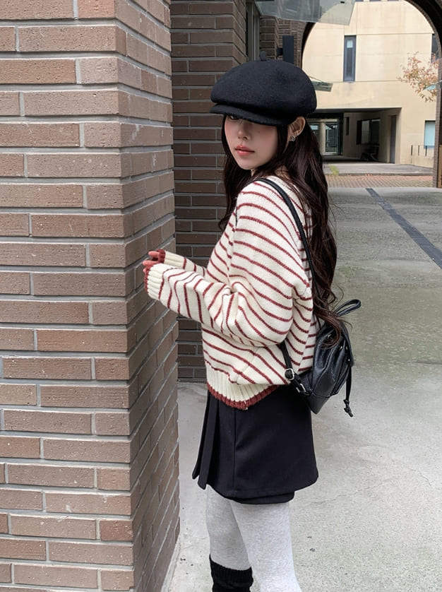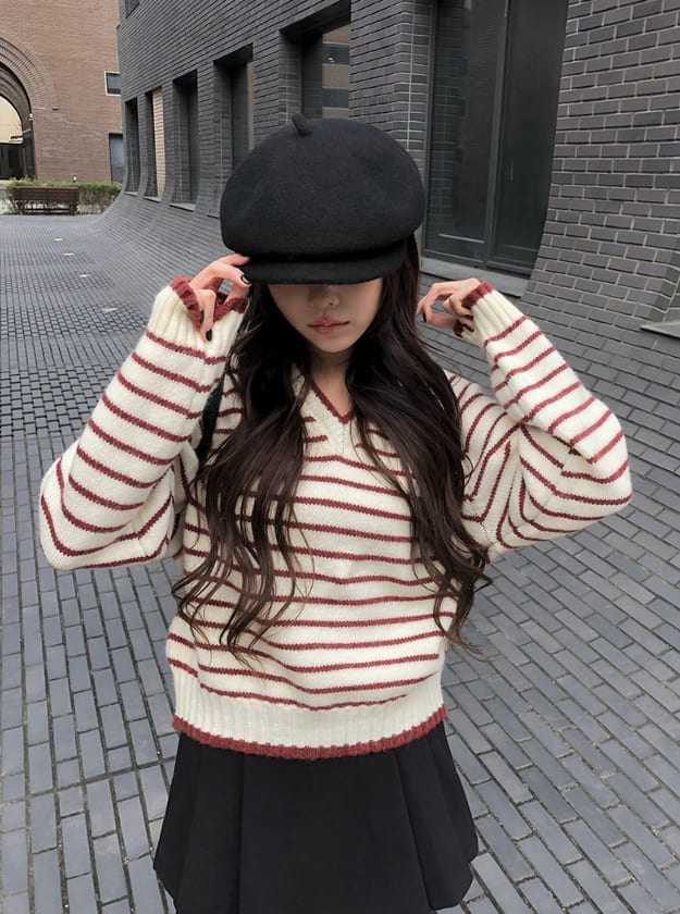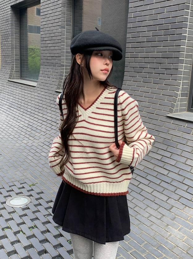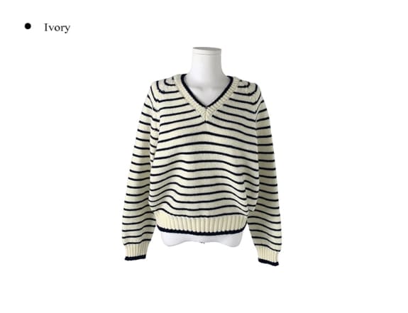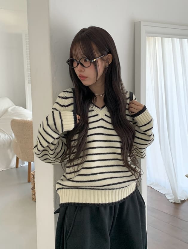 Toto Stripe V-neck Loose Fit Long Sleeve Knit