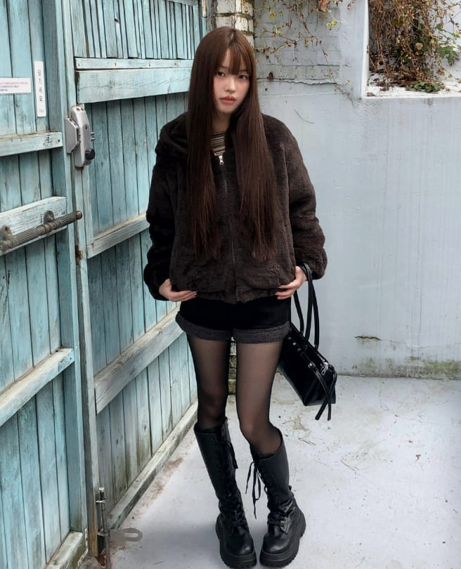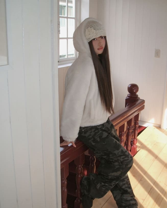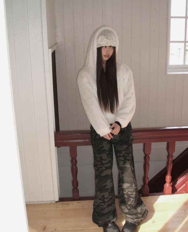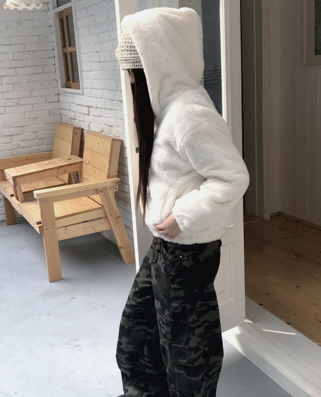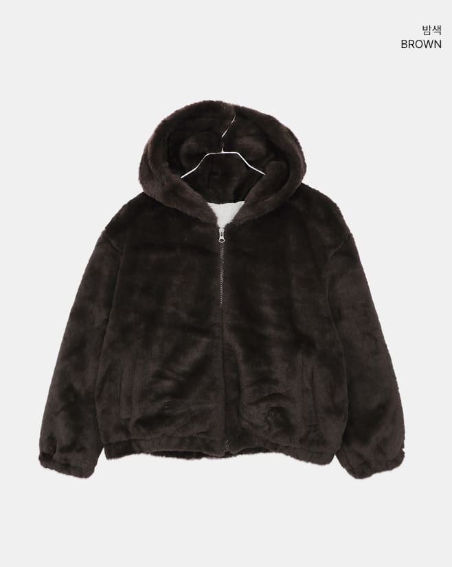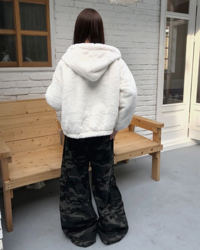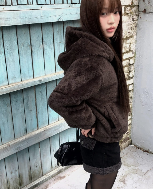 Tsuha Fur Hooded Lining Quilted Loose Fit Zip-Up Jacket