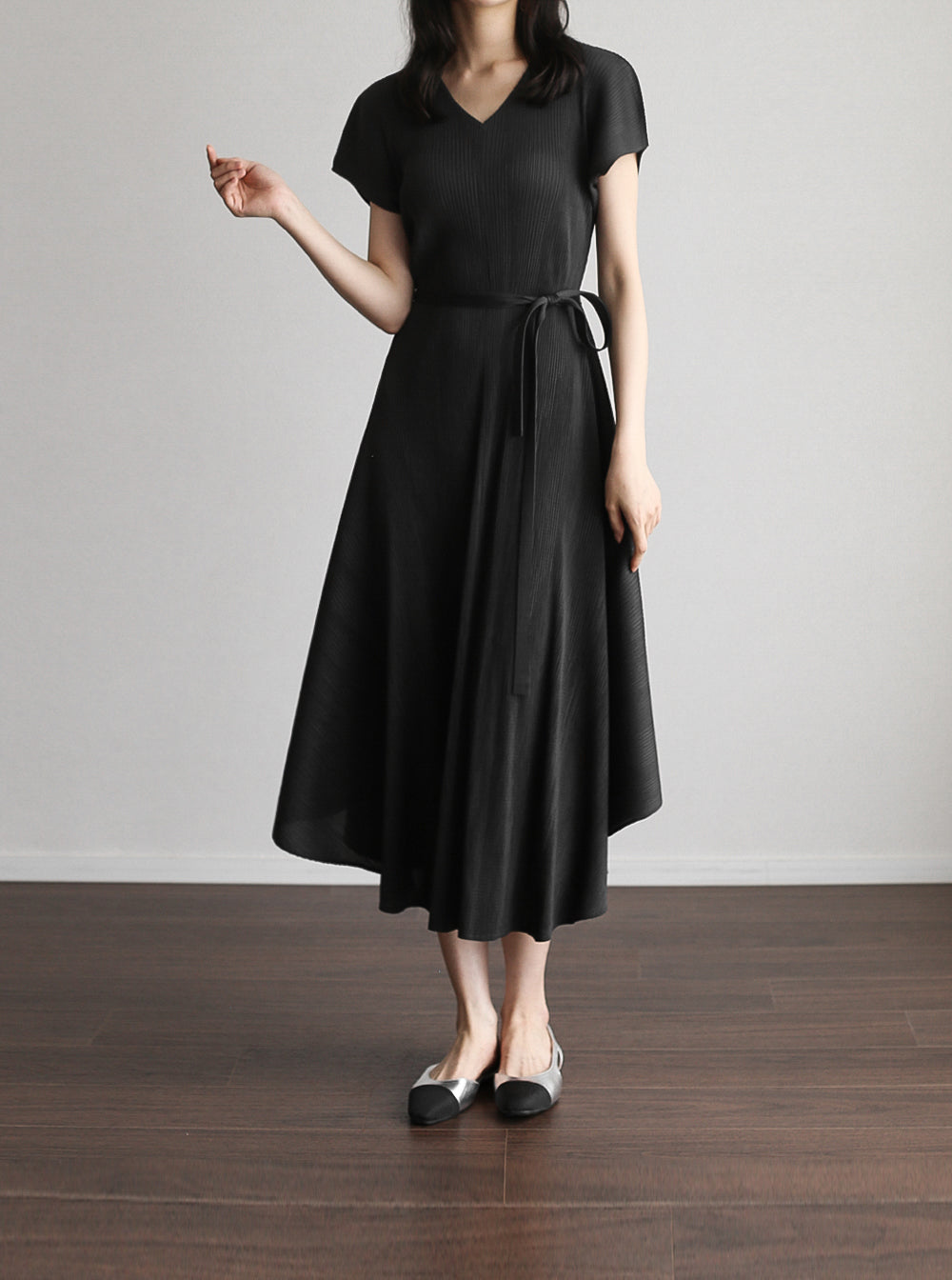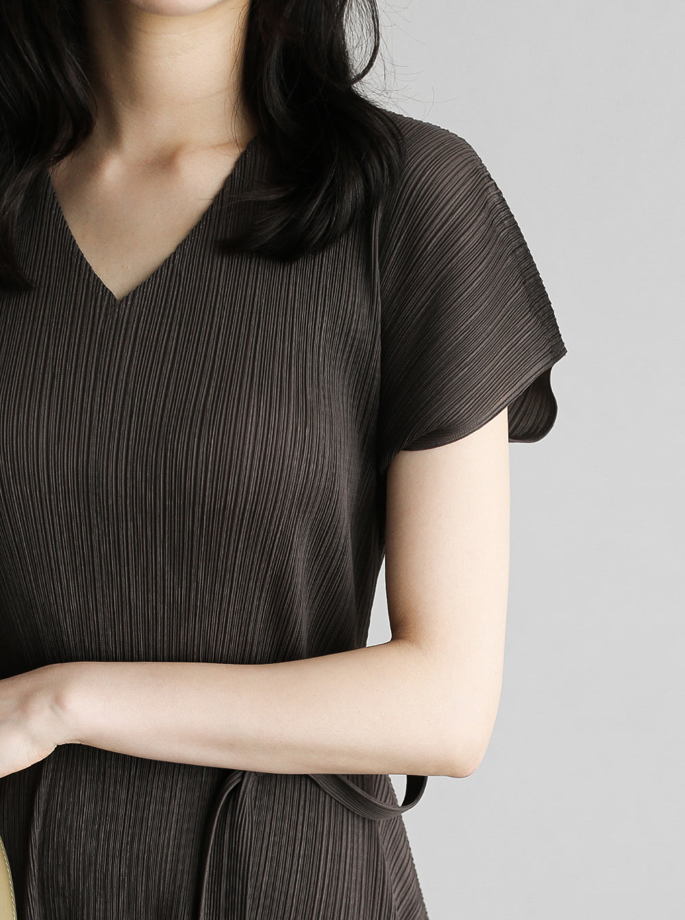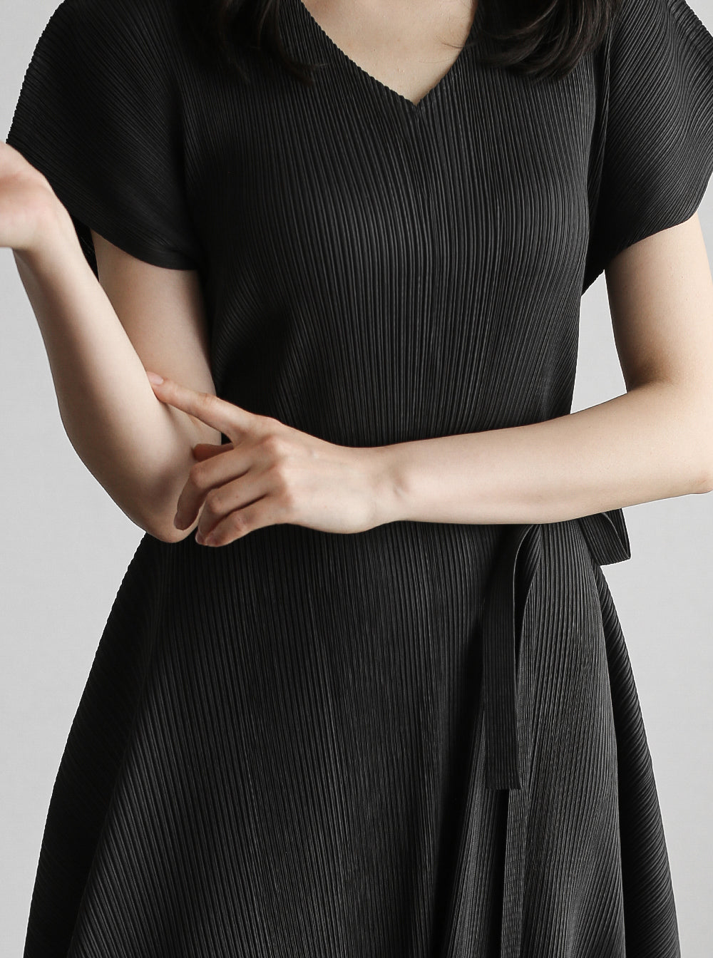 [Premium] Armoni Pleated Belt V-Neck One Piece