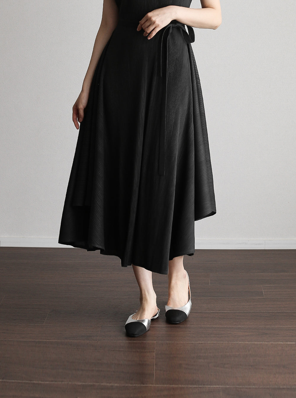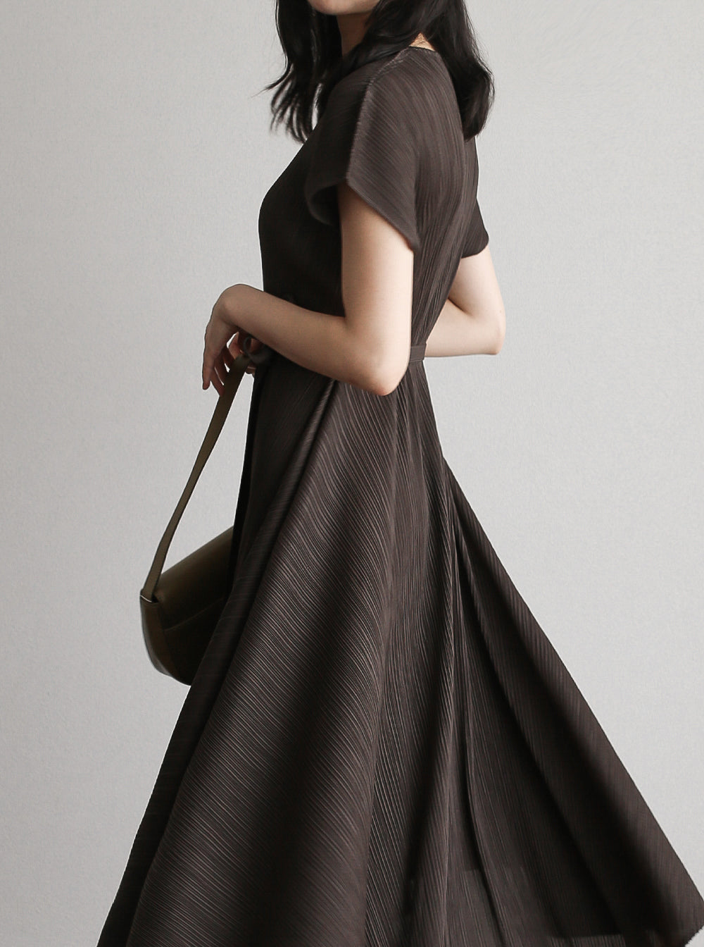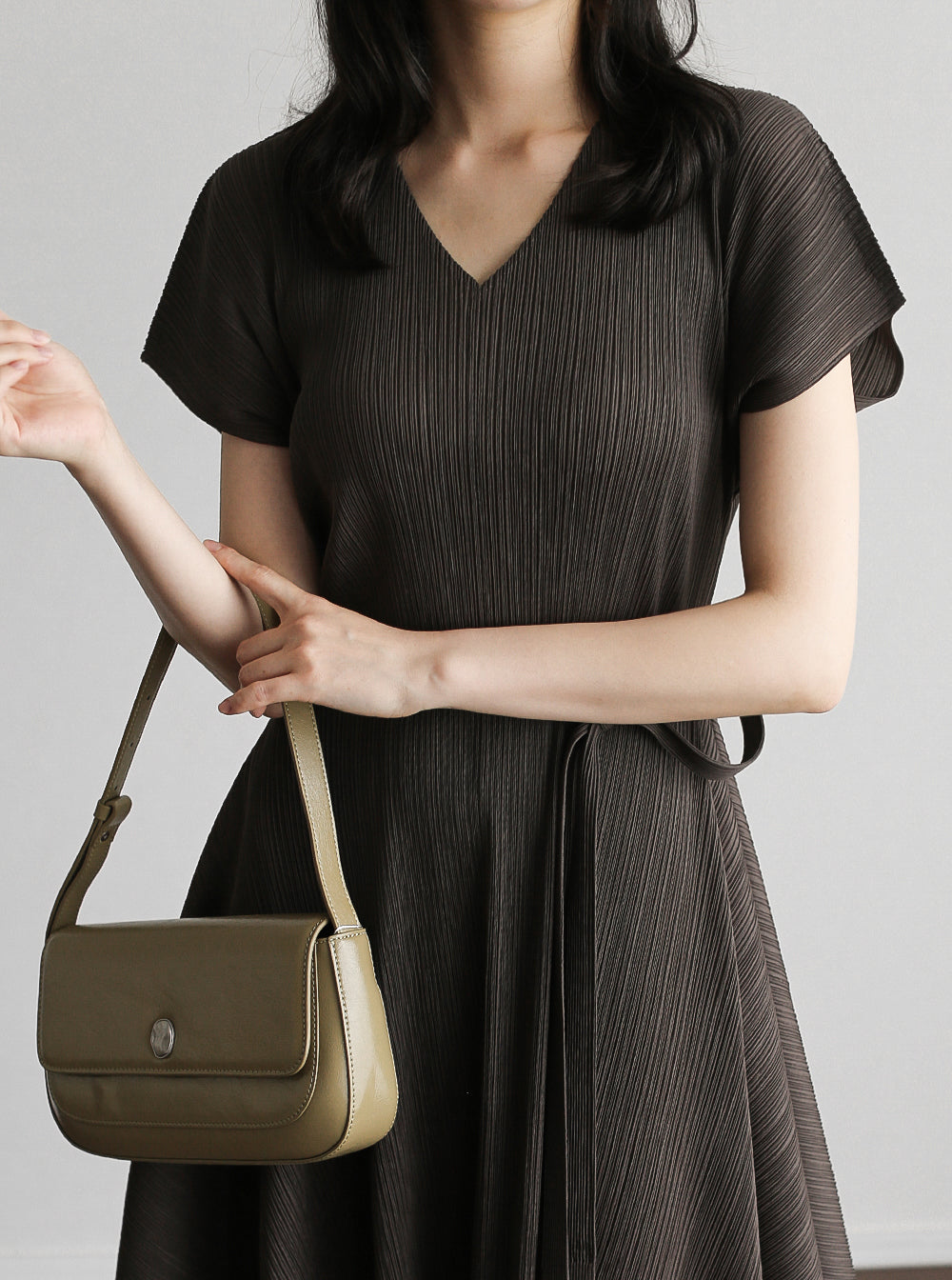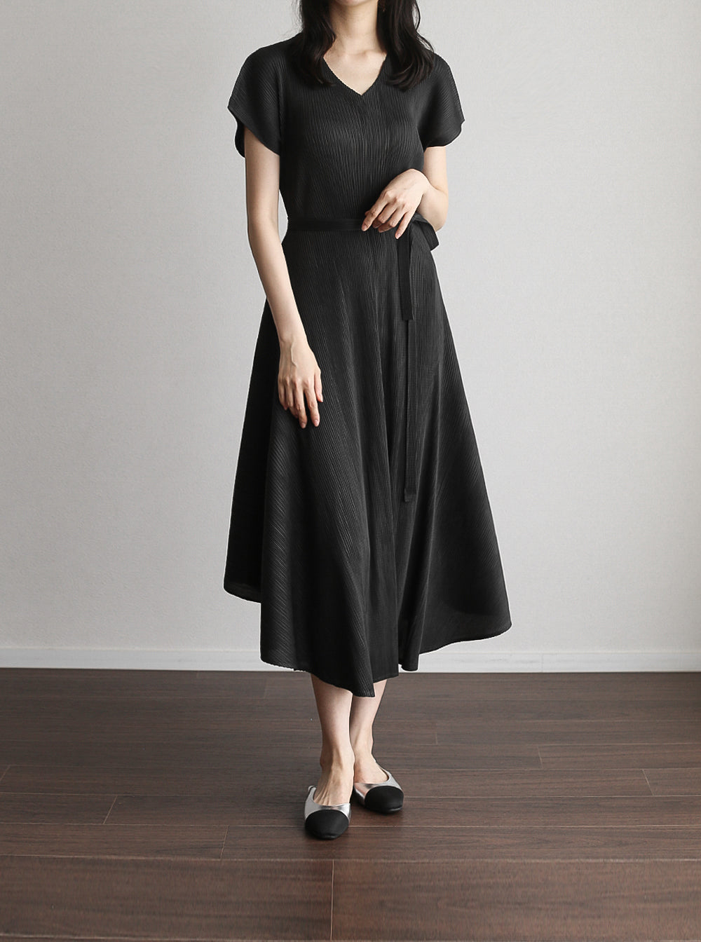 [Premium] Armoni Pleated Belt V-Neck One Piece