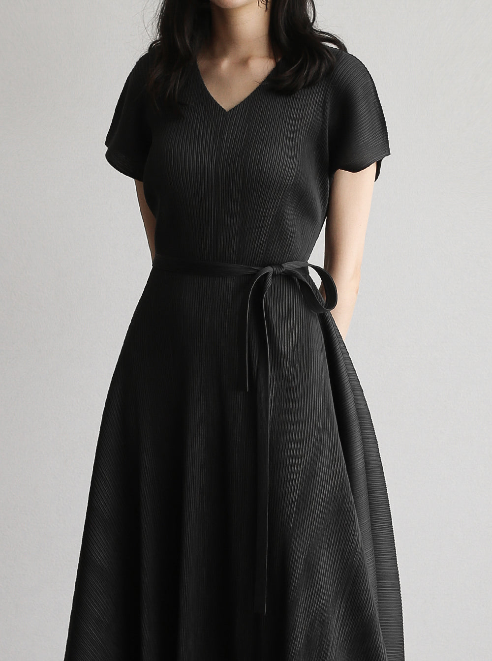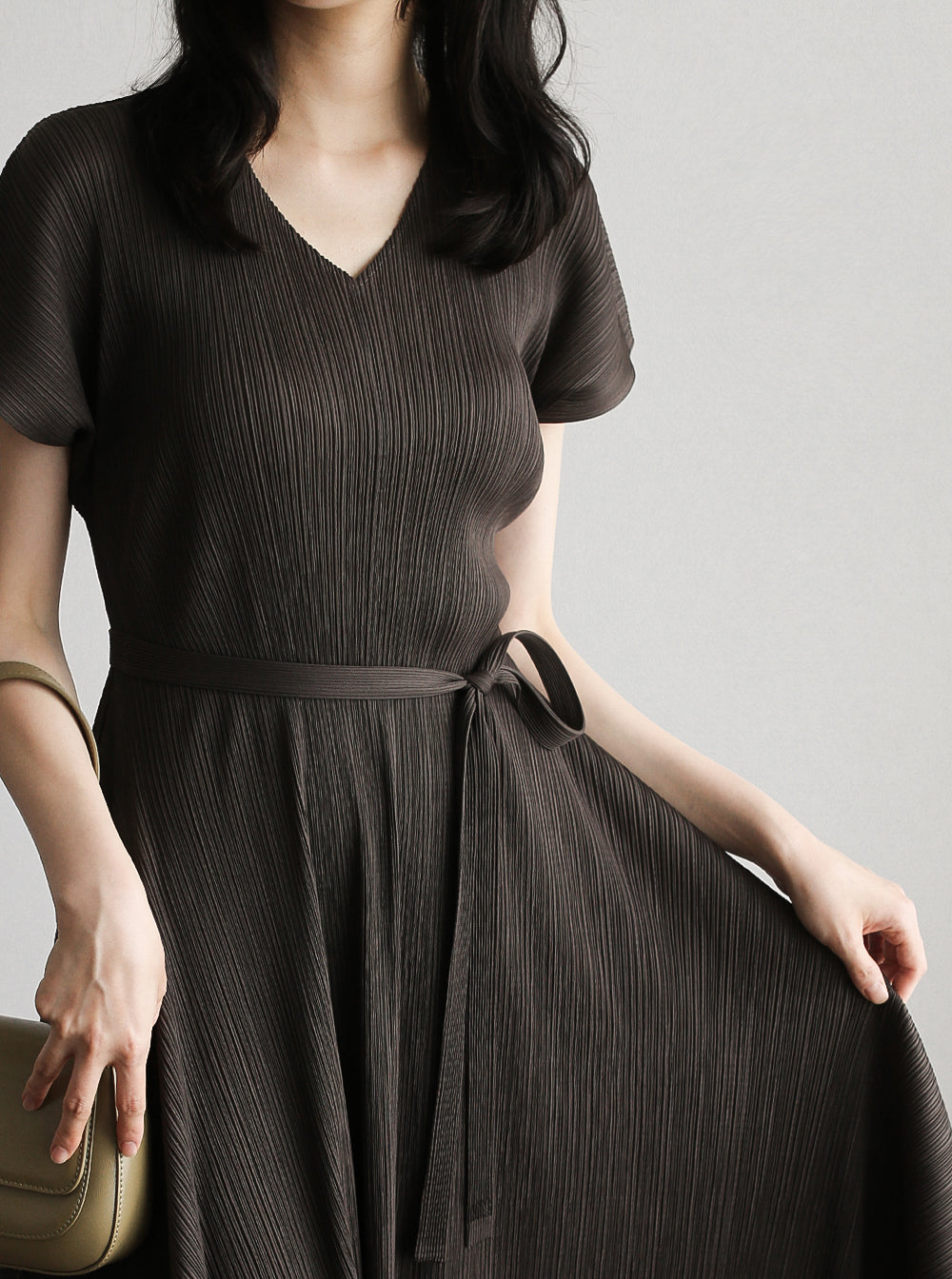 [プレミアム]アルモニプリーツベルトVネックワンピース