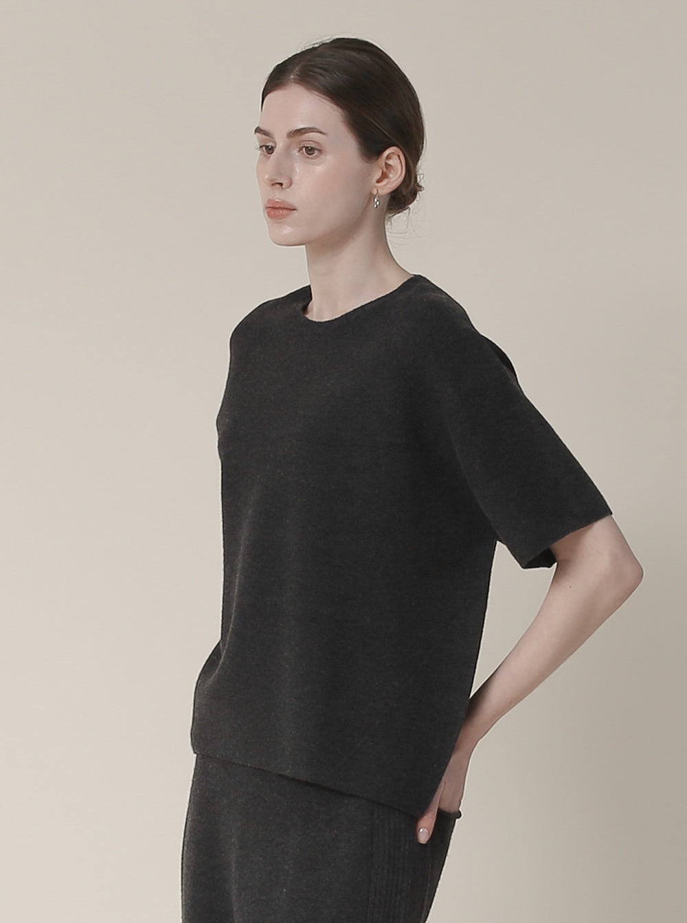 -[Premium] Bird Whole Garment Short Sleeve Knit (着丈58.5 肩幅ラグラン 胸囲110 袖丈35)