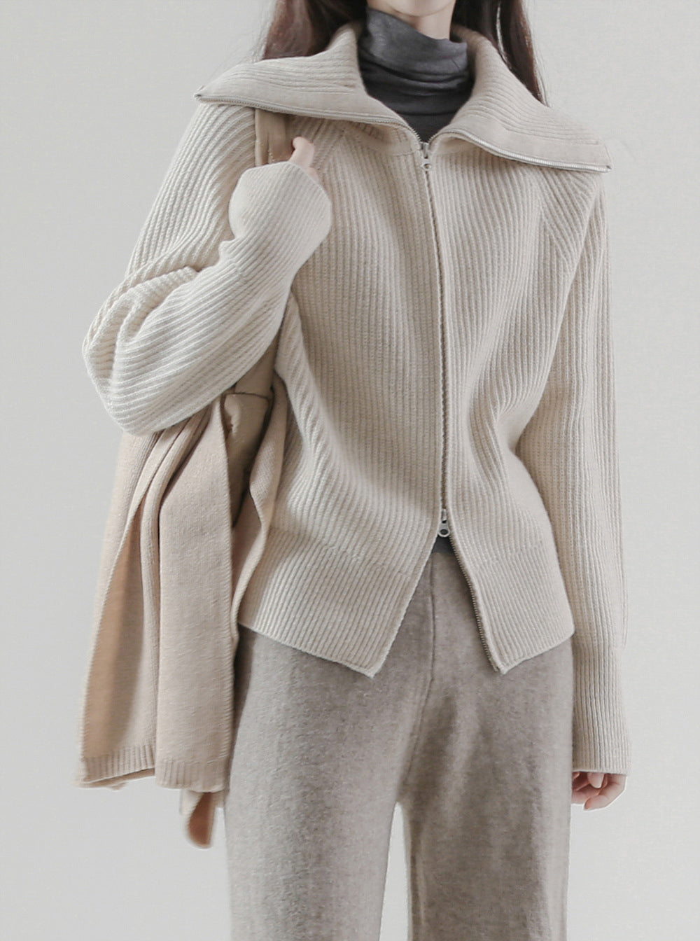 [Premium] Cory Two-Way Zip Up Knit