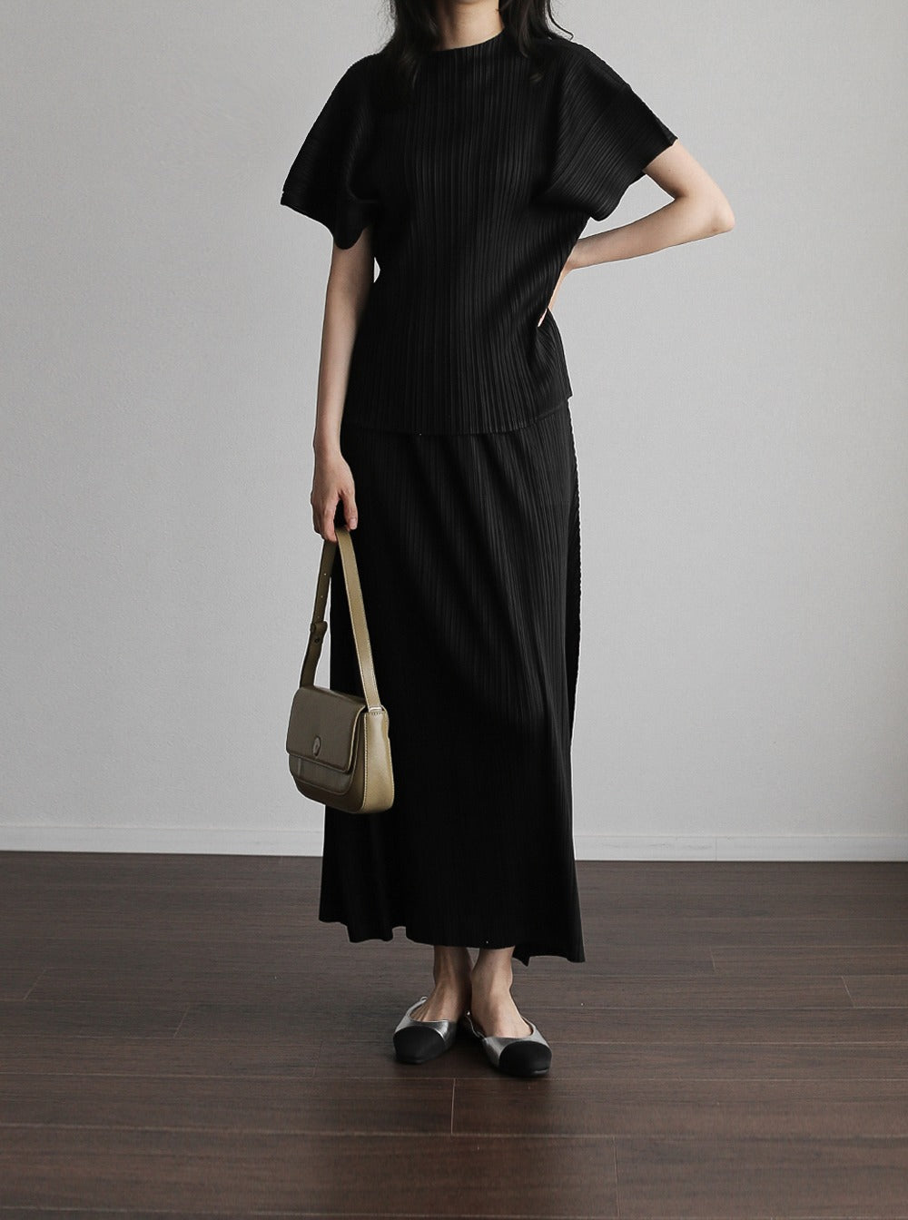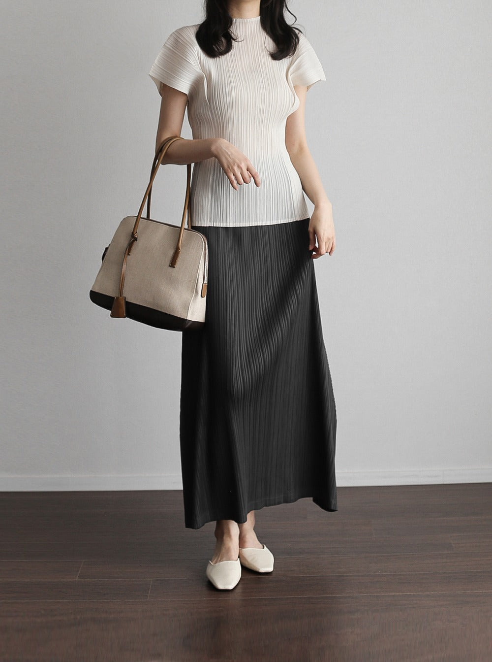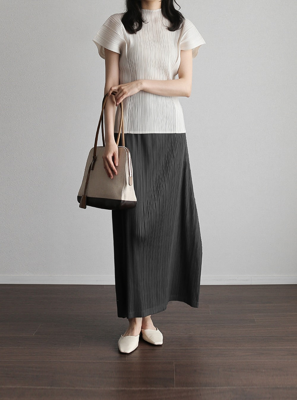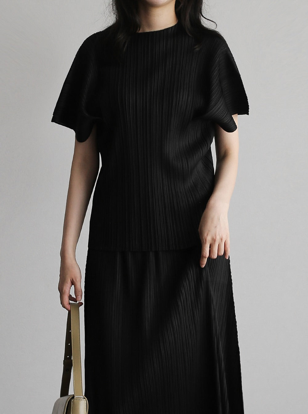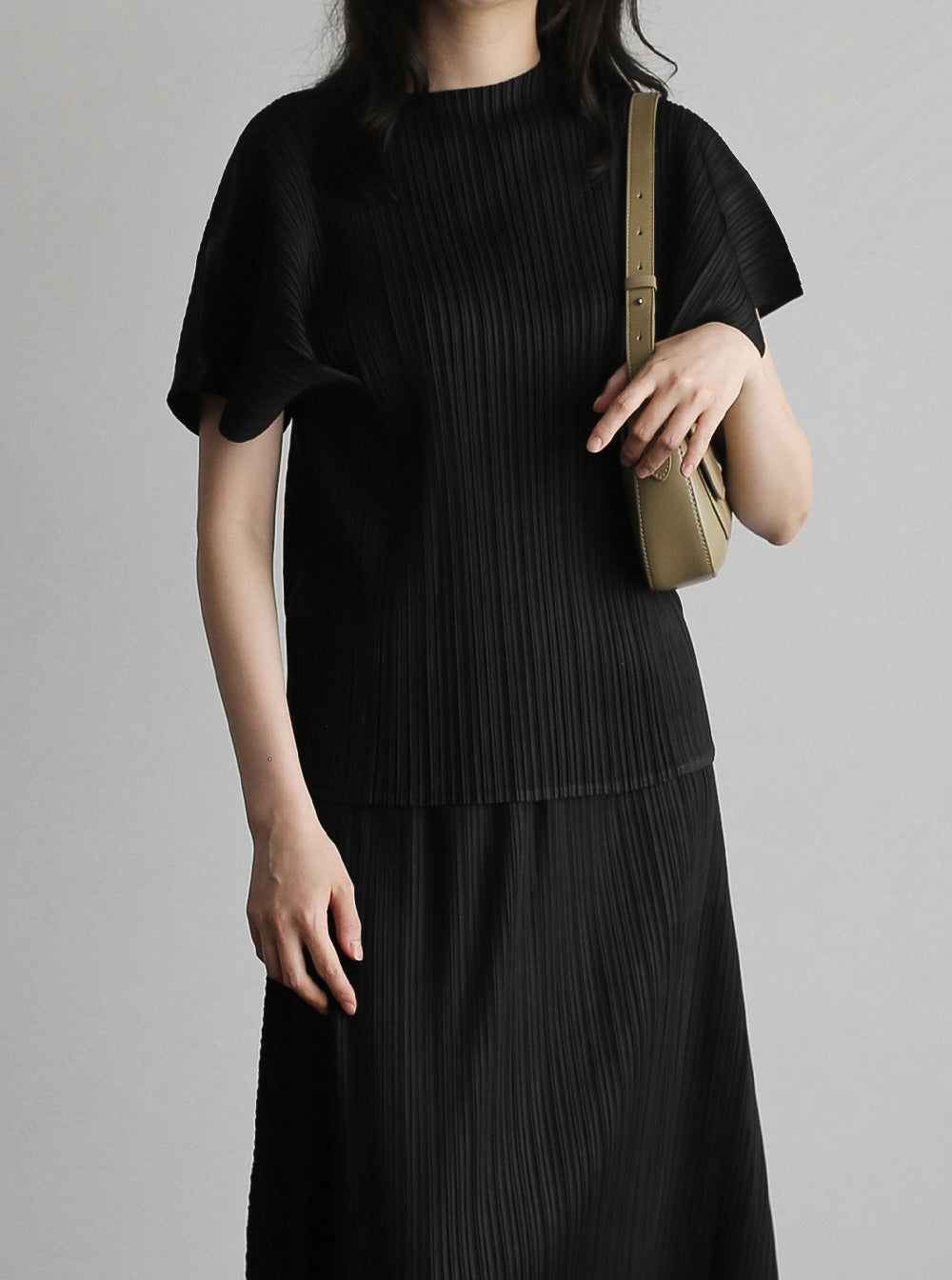 [Premium] Orea High Neck Short Sleeve Pleated T-Shirt