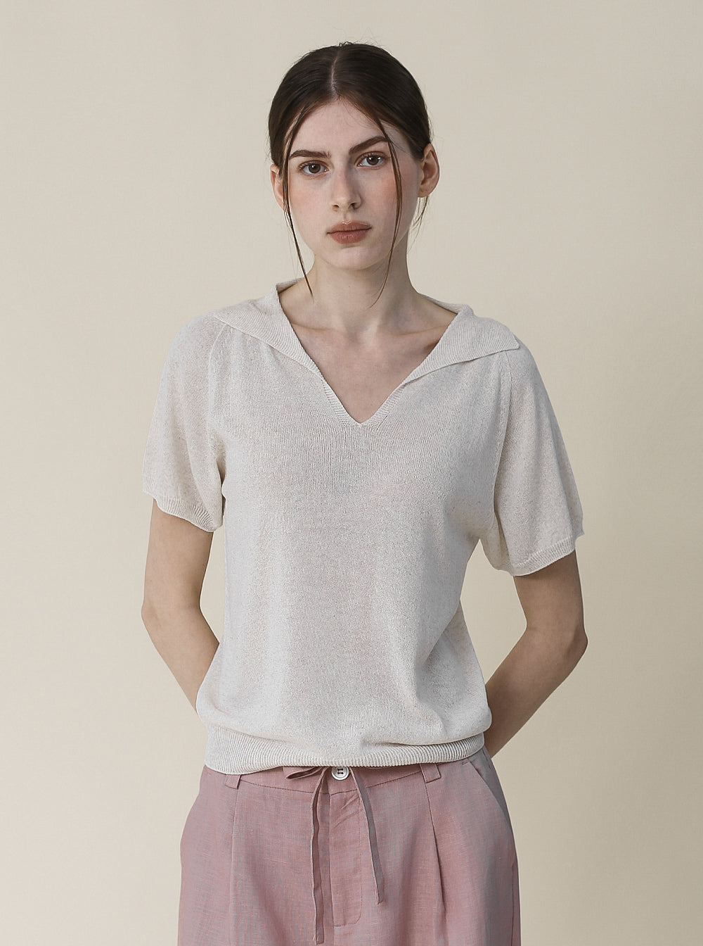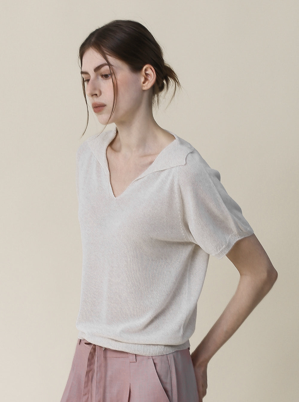 [Premium] Whole Garment Cariha V-neck Short Sleeve Knitwear