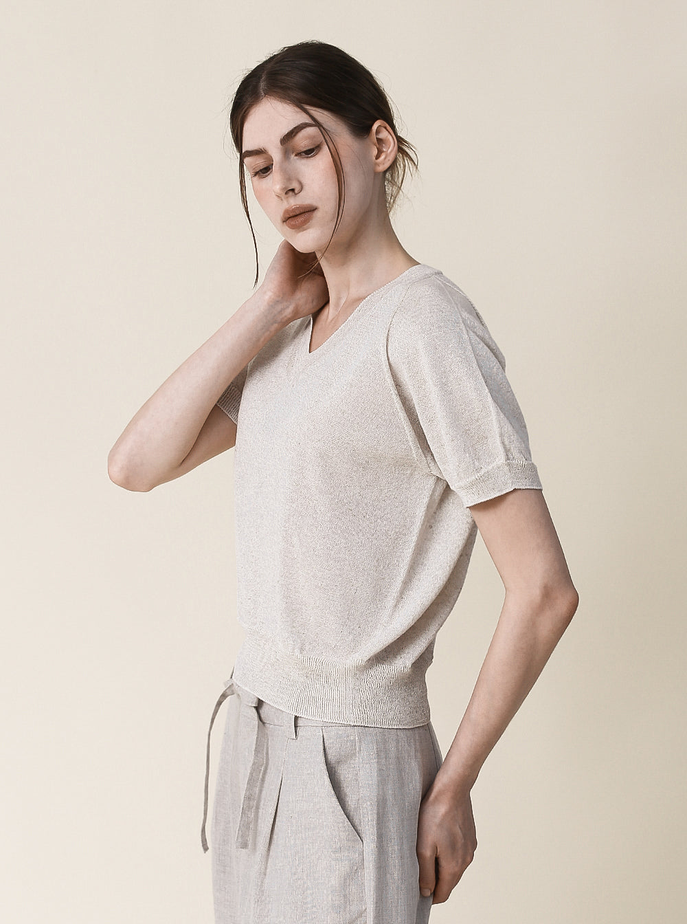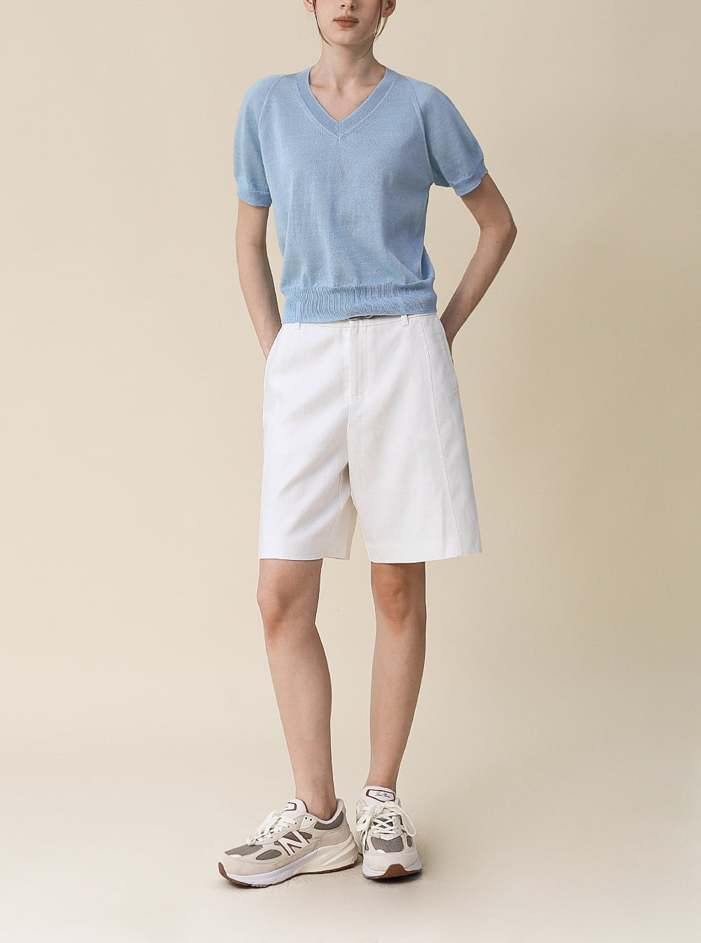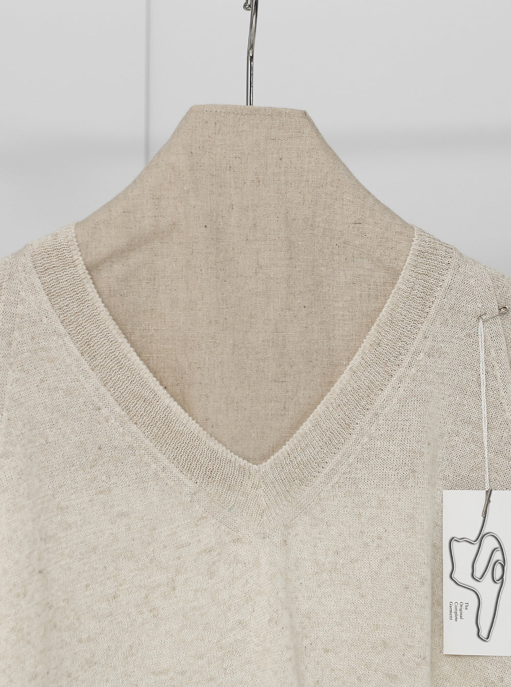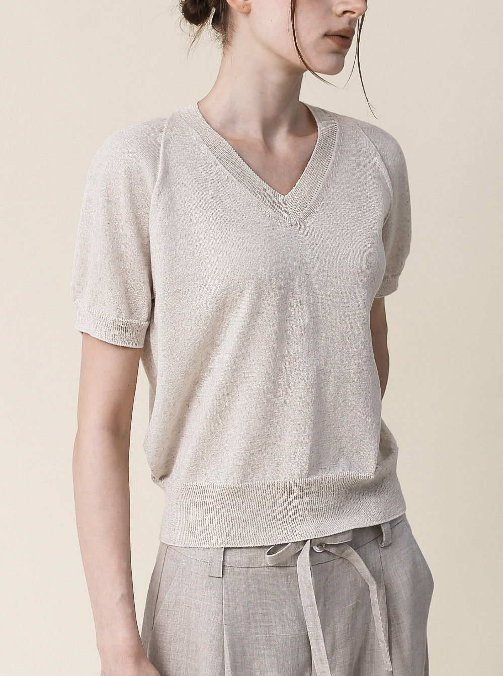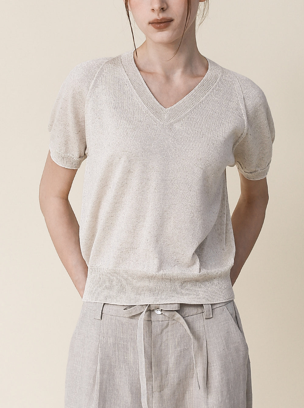 [Premium] Whole Garment Marsil Linen V Short Sleeve Knit