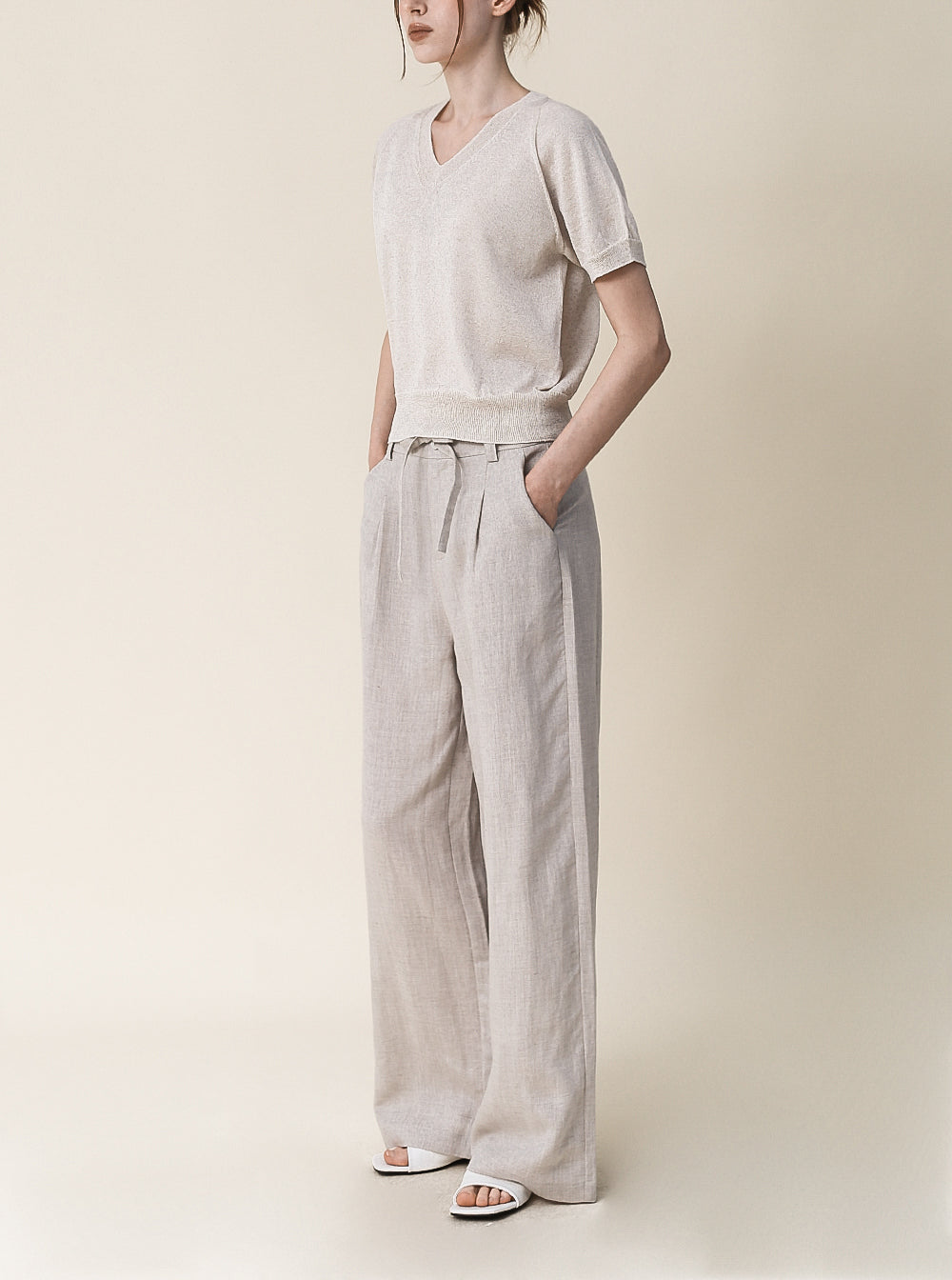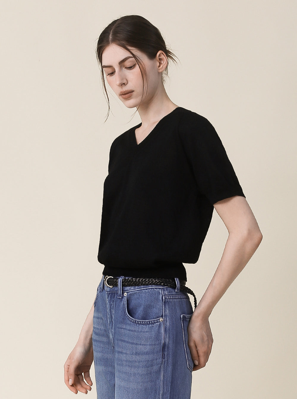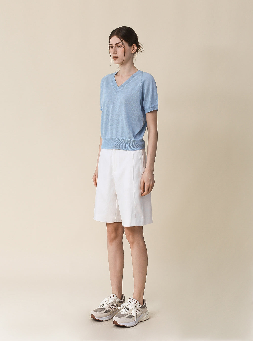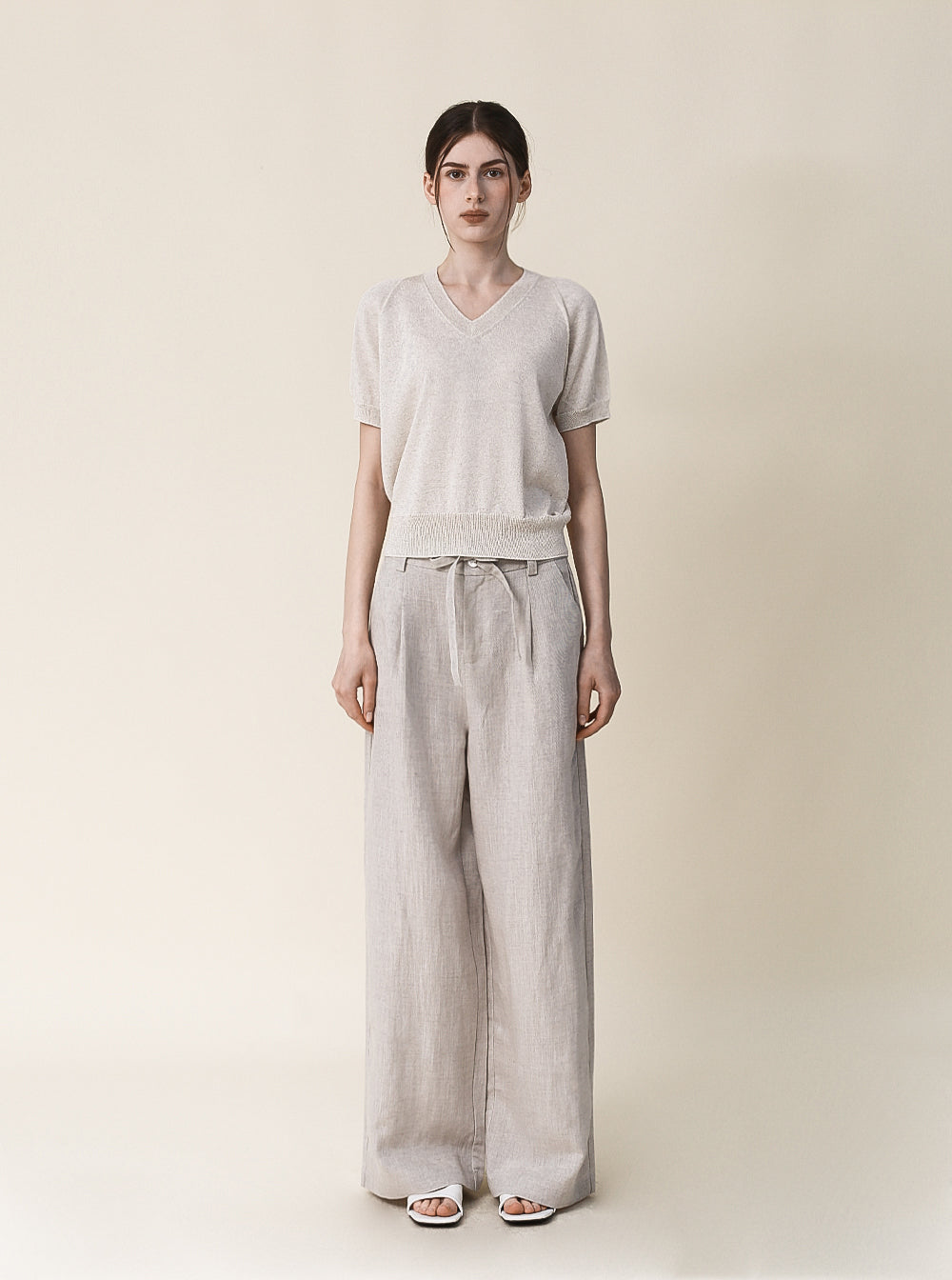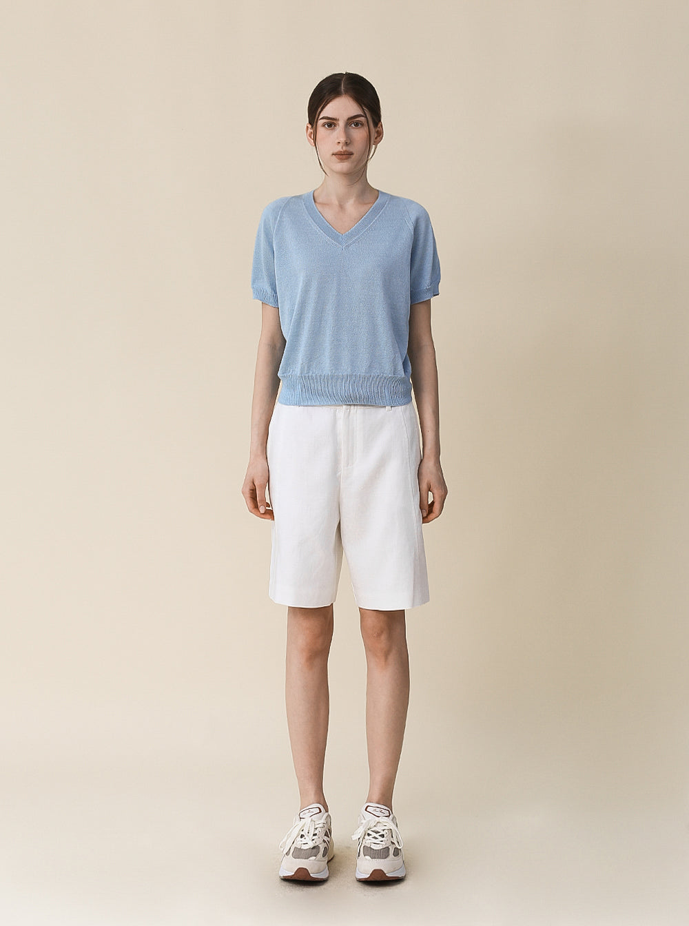 [Premium] Whole Garment Marsil Linen V Short Sleeve Knit