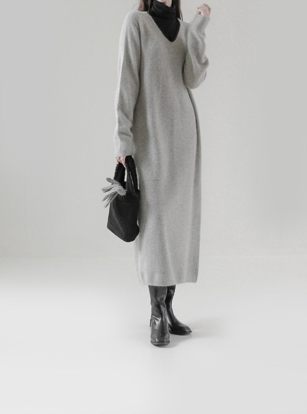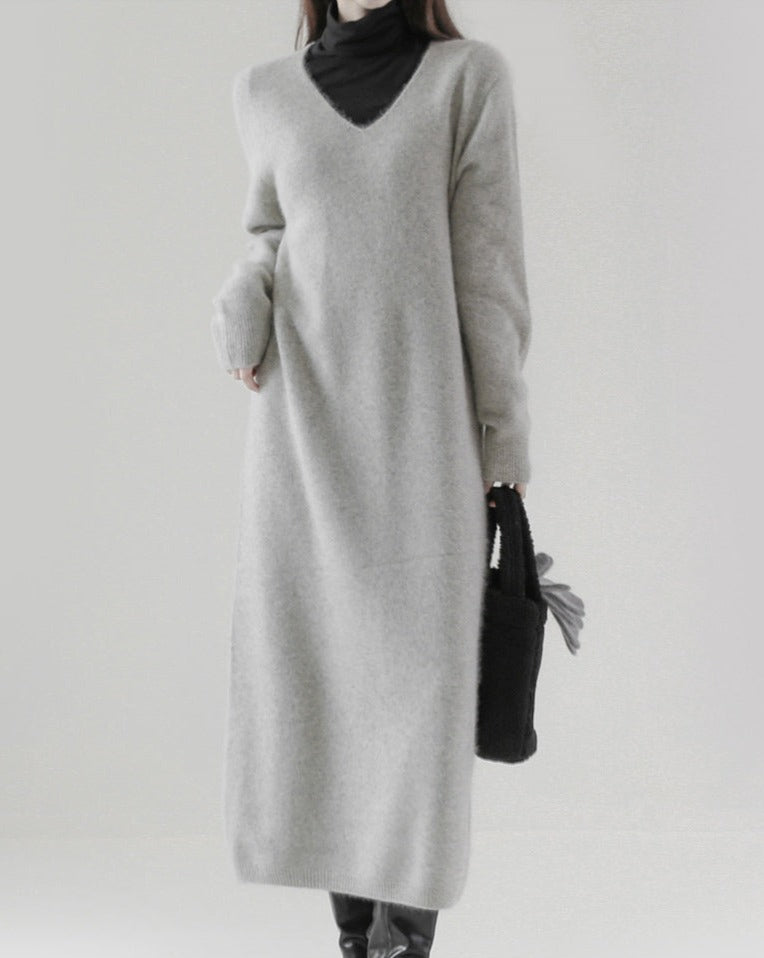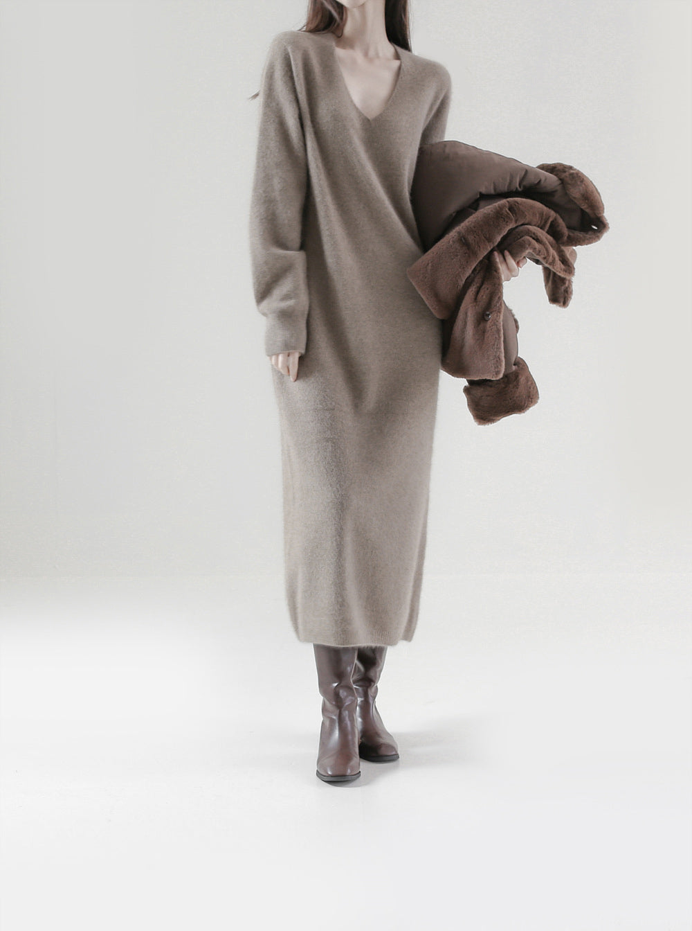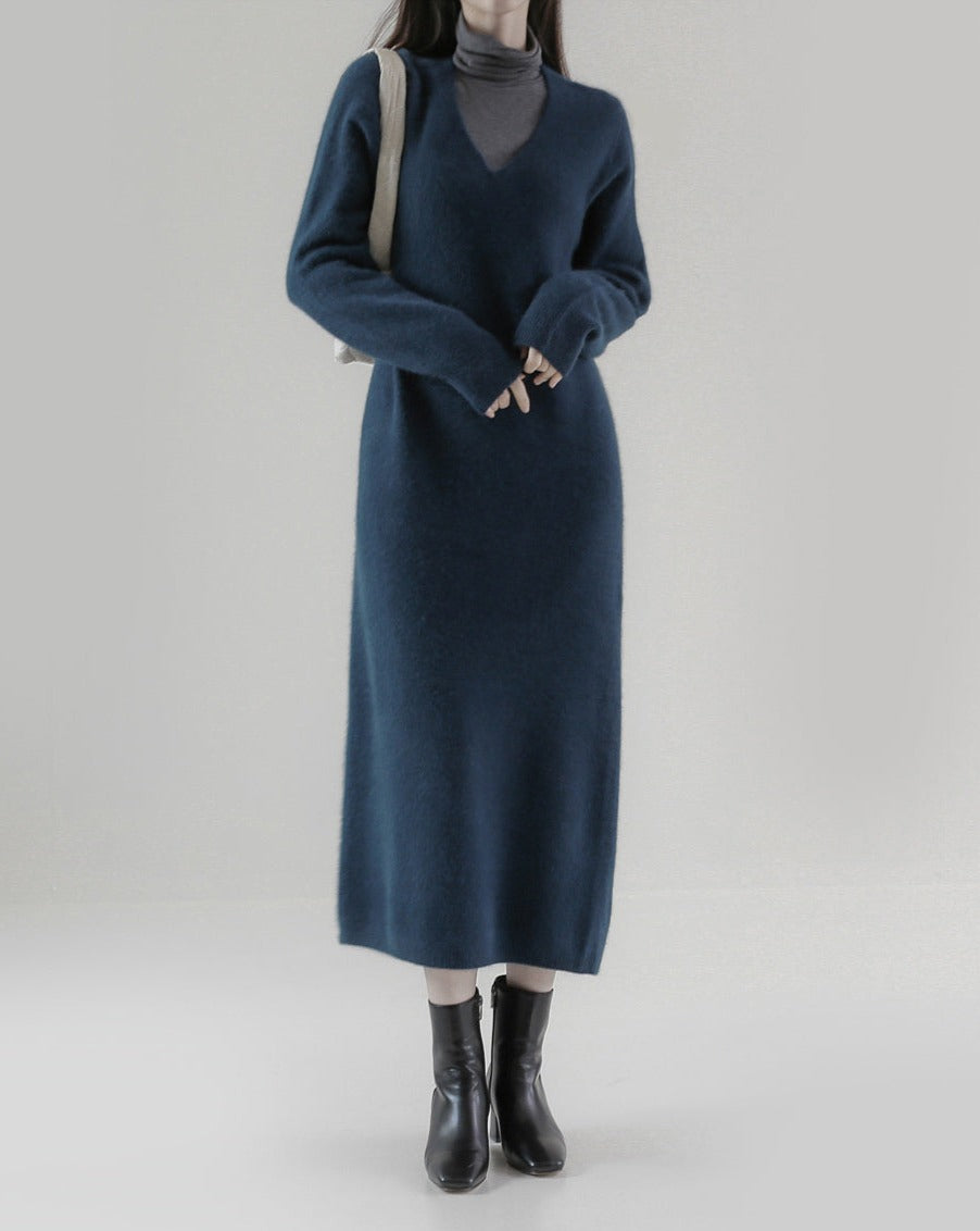 [プレミアム]ホールガーメントラクーンVネックワンピース