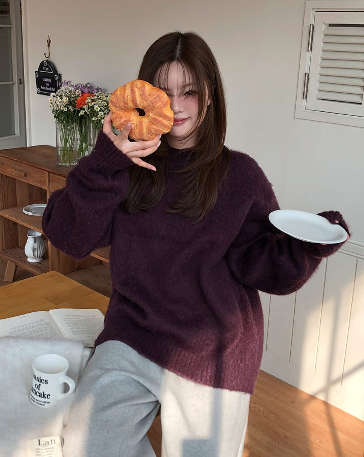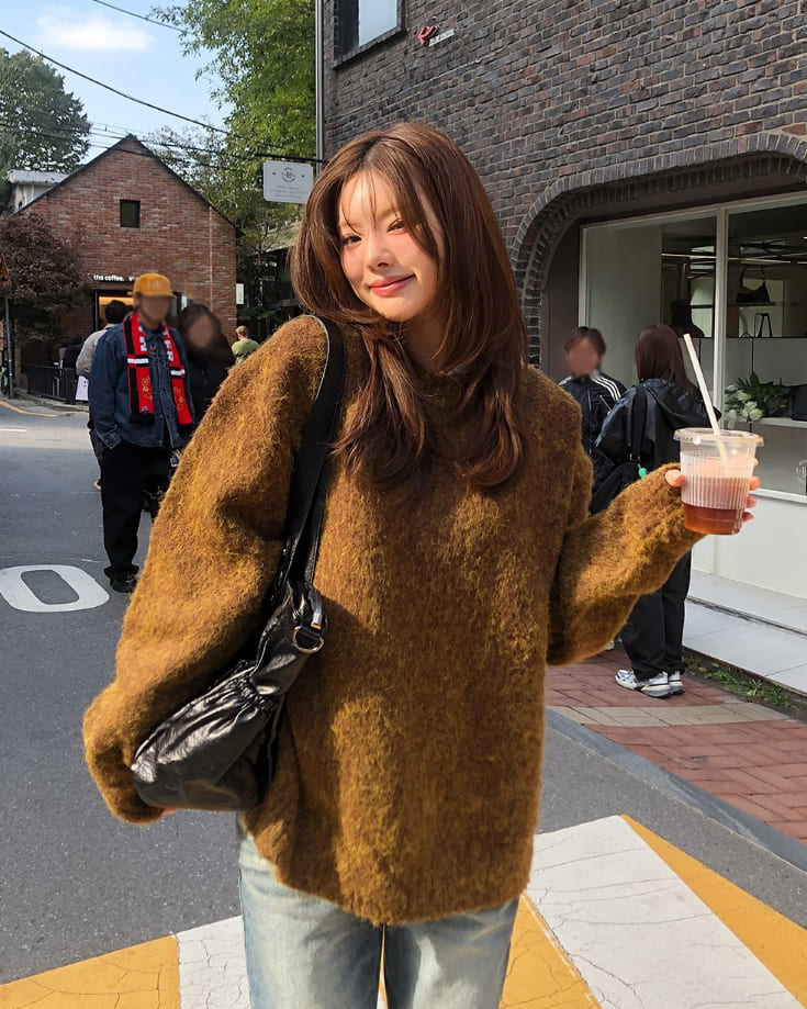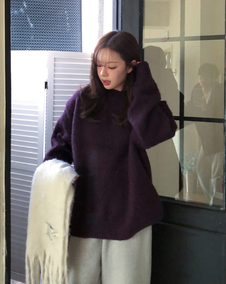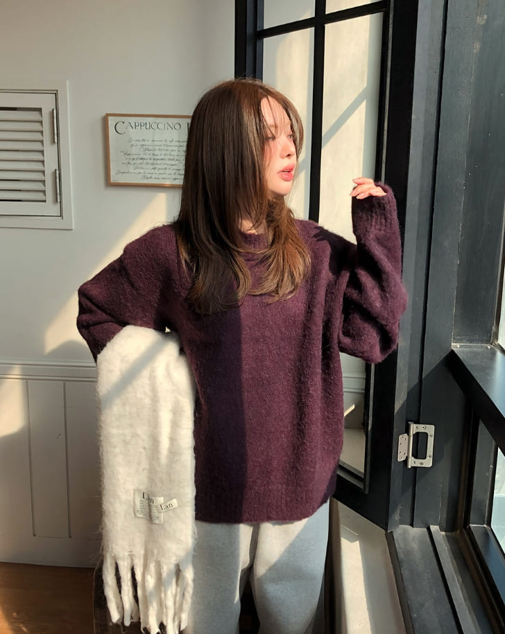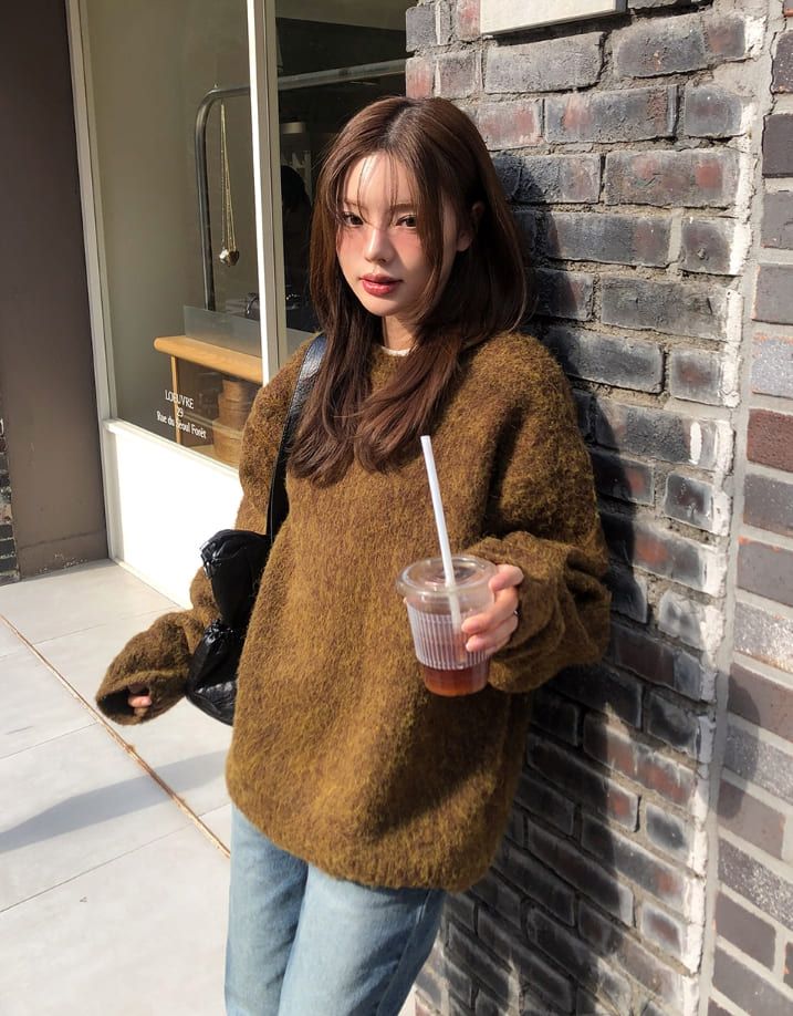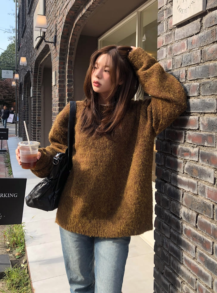 [ウール10%]ハガブルツートンミックスモヘアニット