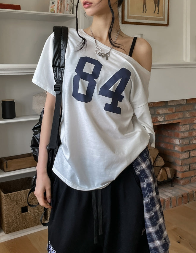 84 Numbering Off-Shoulder Loose Fit Short Sleeve