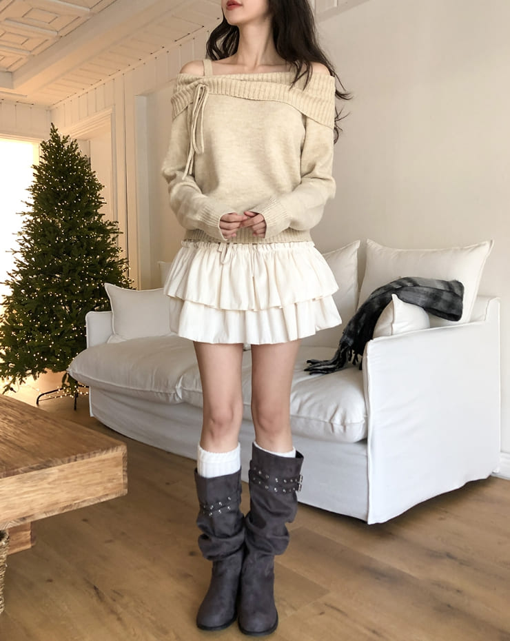 アキベルベットティアードキュロットスカート