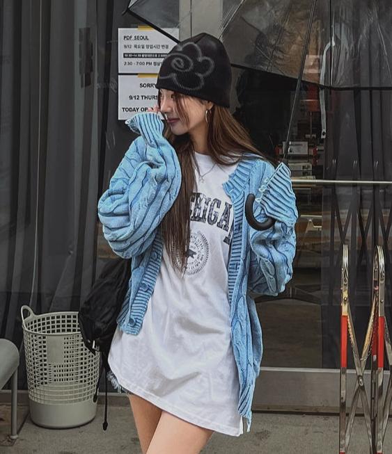 アトダメージケーブルウォッシュ加工カーディガン