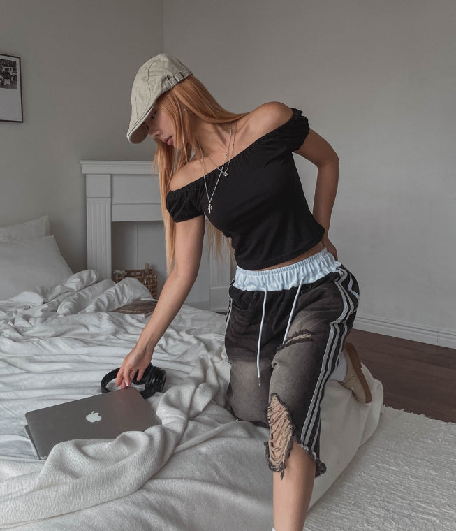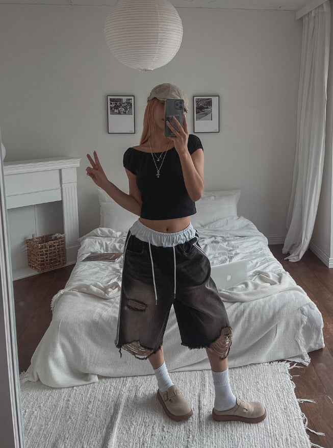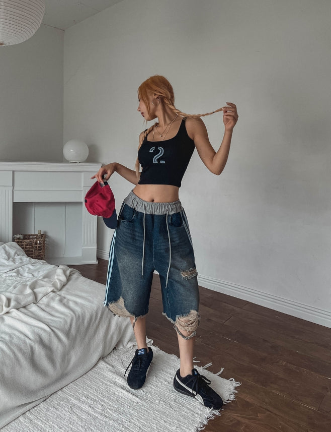 -ONE SIZE (ウエスト(ゴム)58 ヒップ116 股上40 股下22 もも周り68 裾周り64 総丈62)
