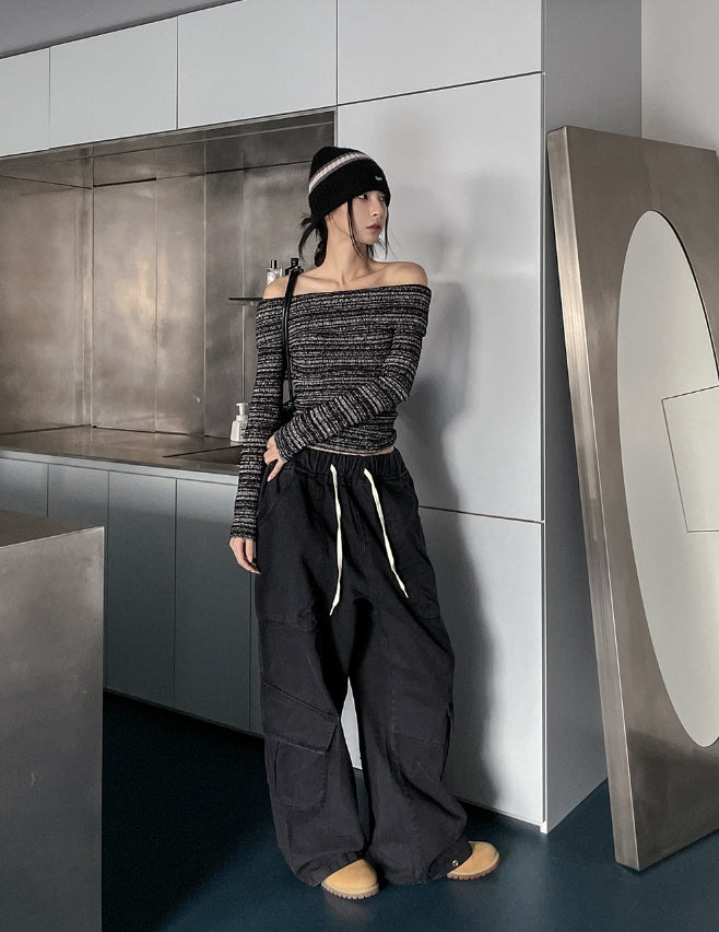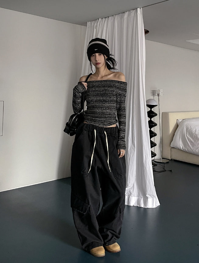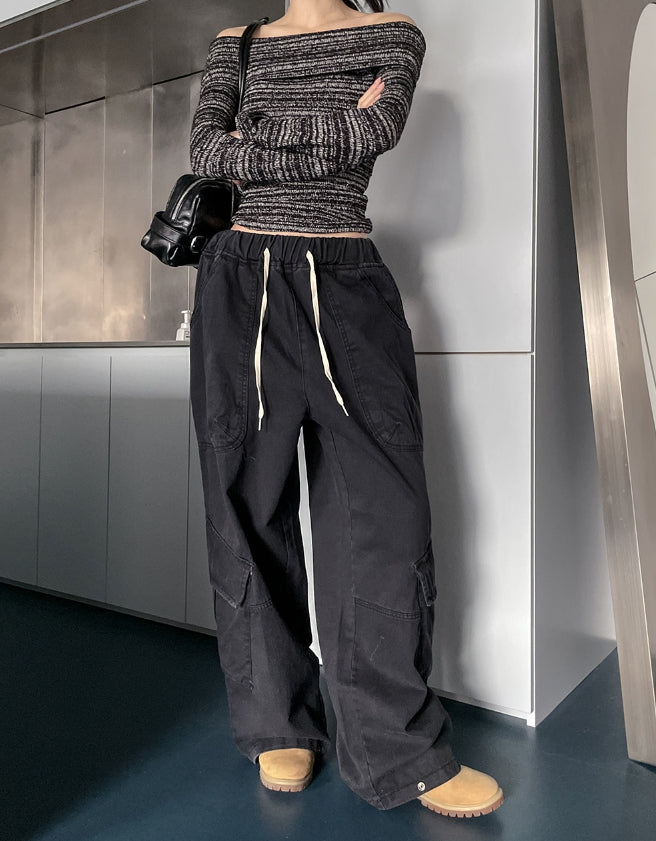 -ONE SIZE (ウエスト(ゴム)56 ヒップ116 股上37 股下70 もも周り78 裾周り58 総丈107)