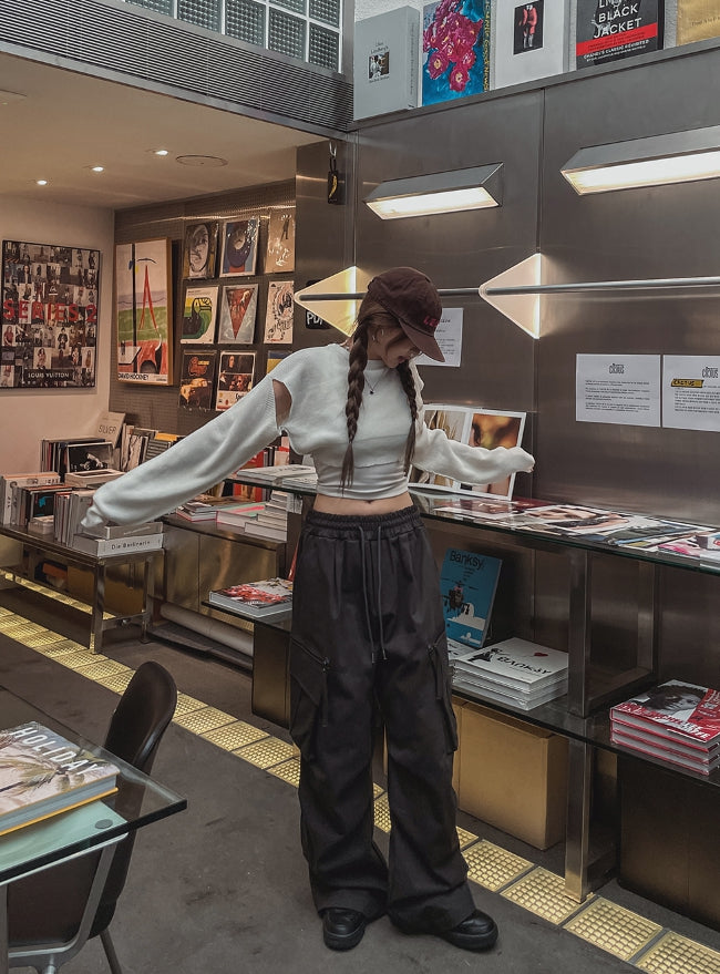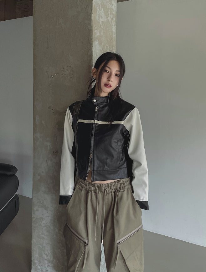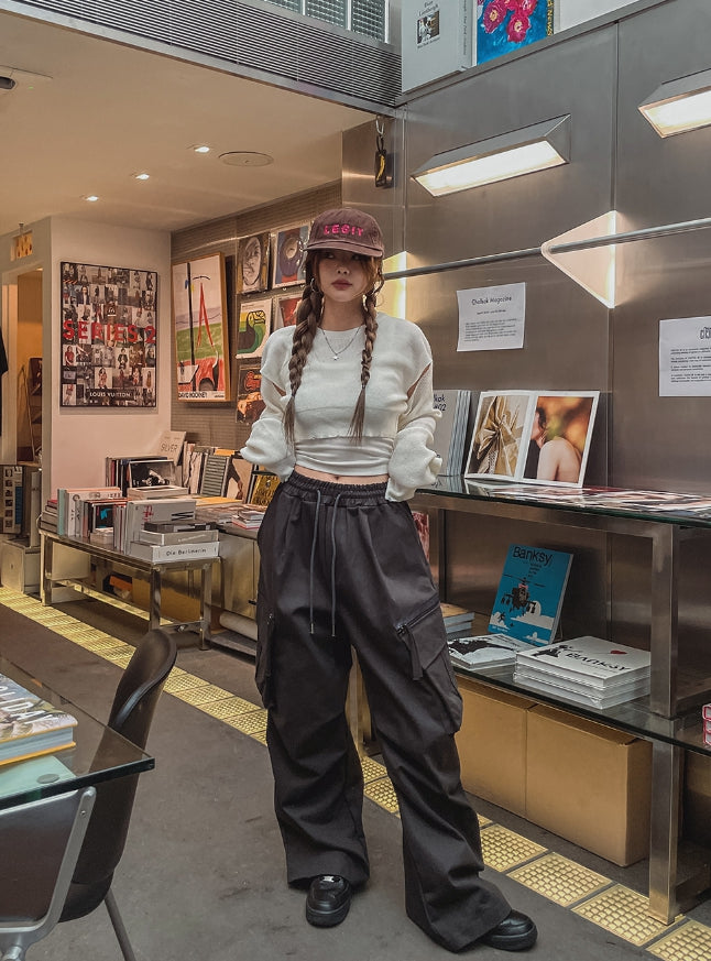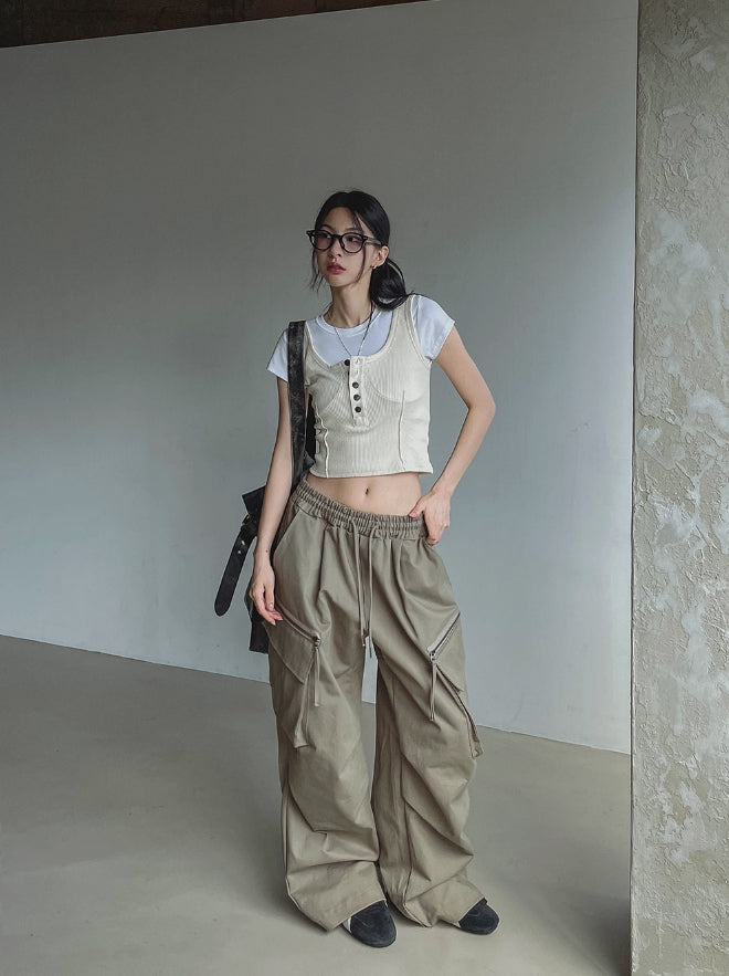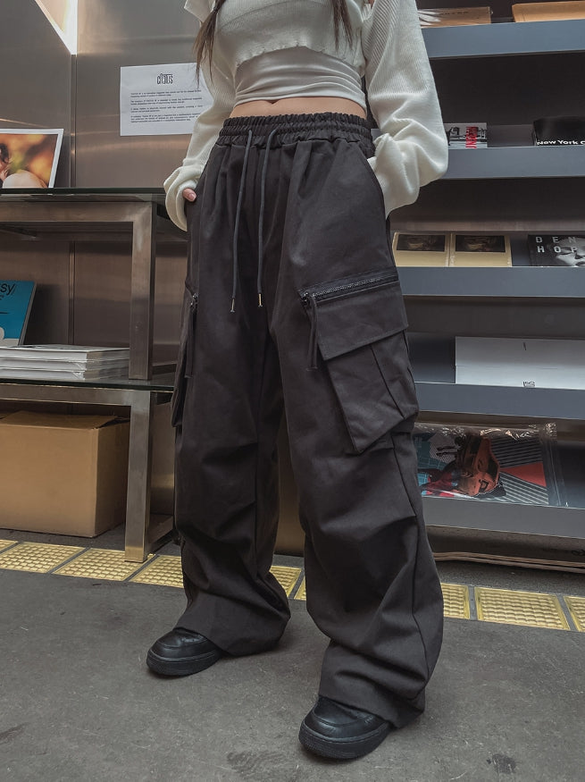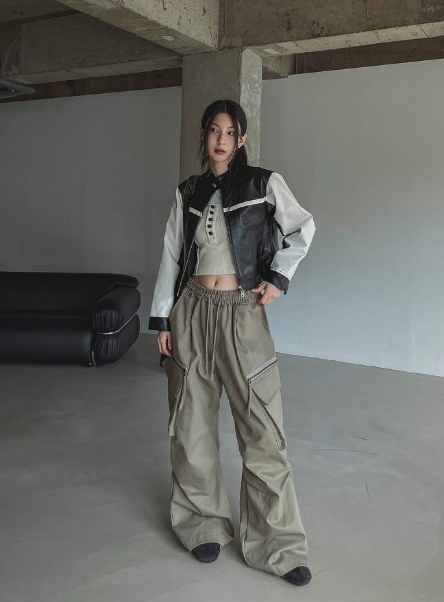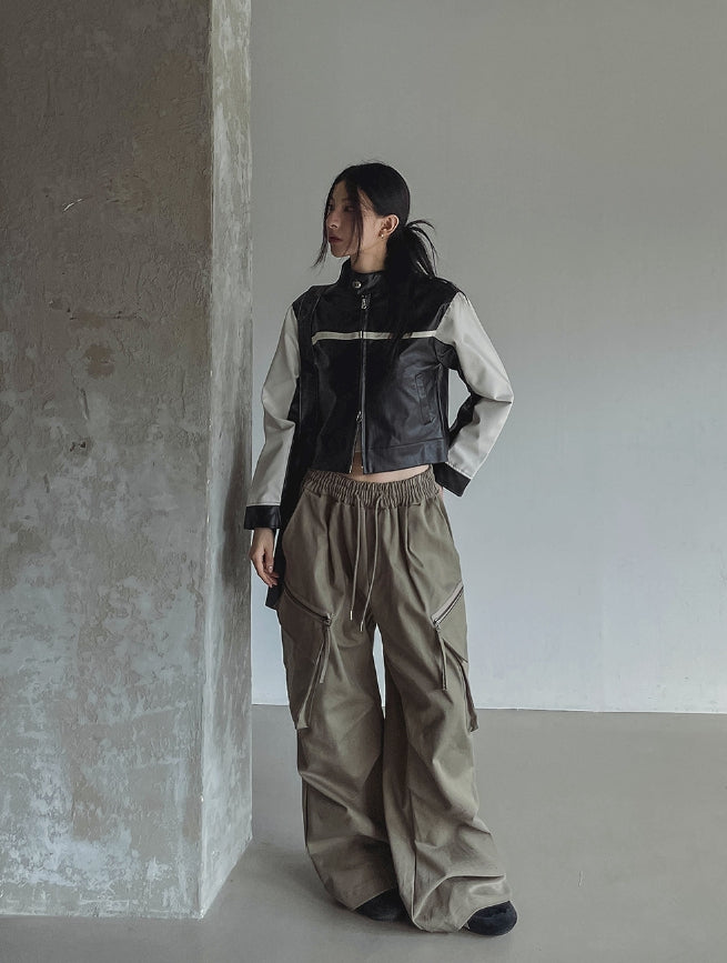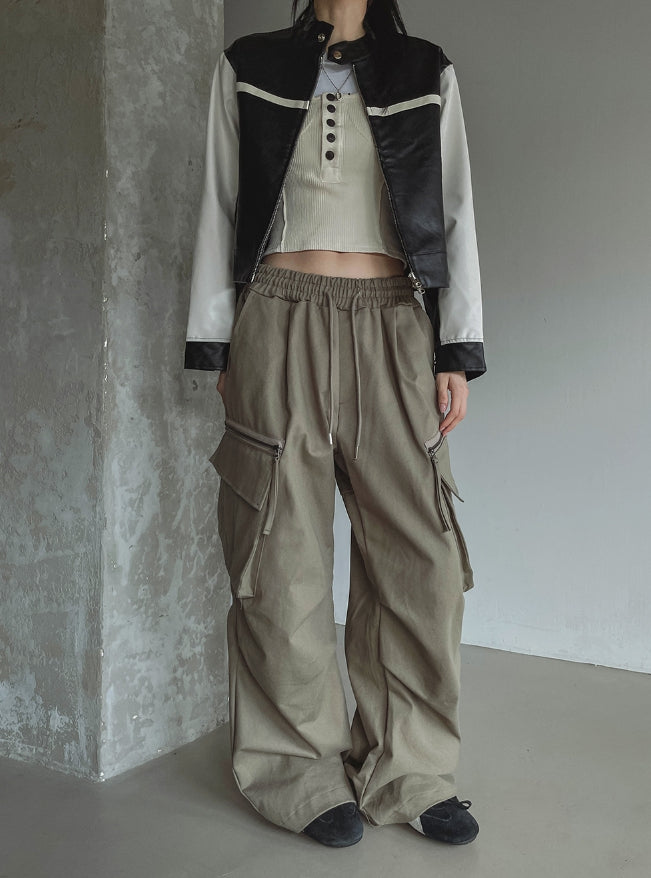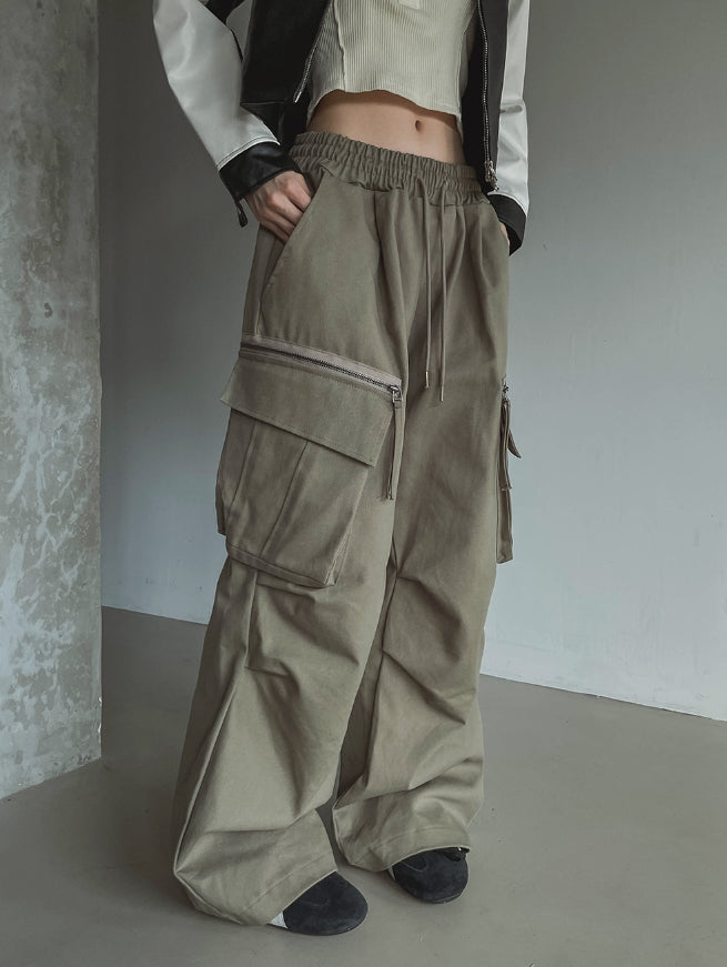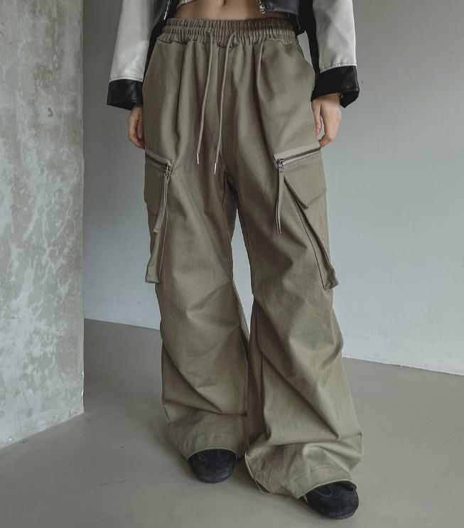 Bendy Zipper Diagonal Pocket Cargo Pants