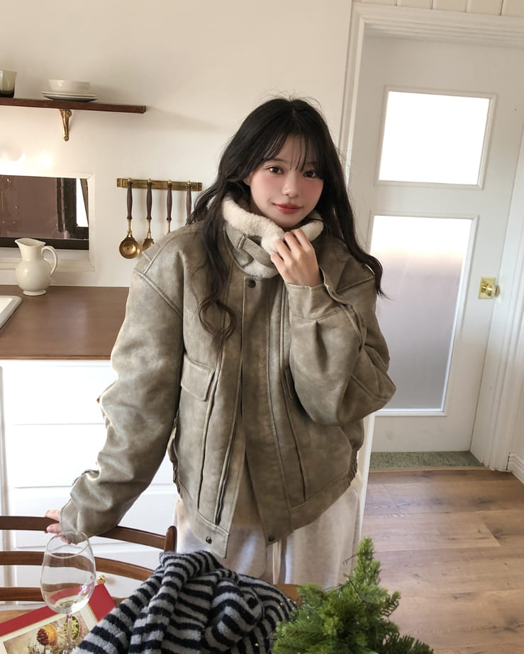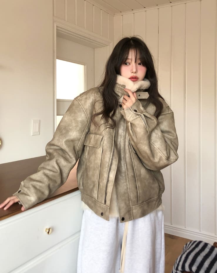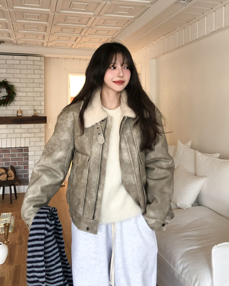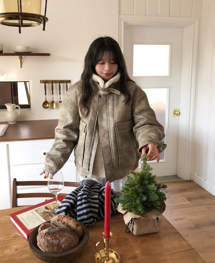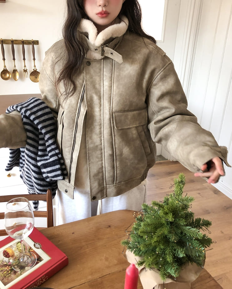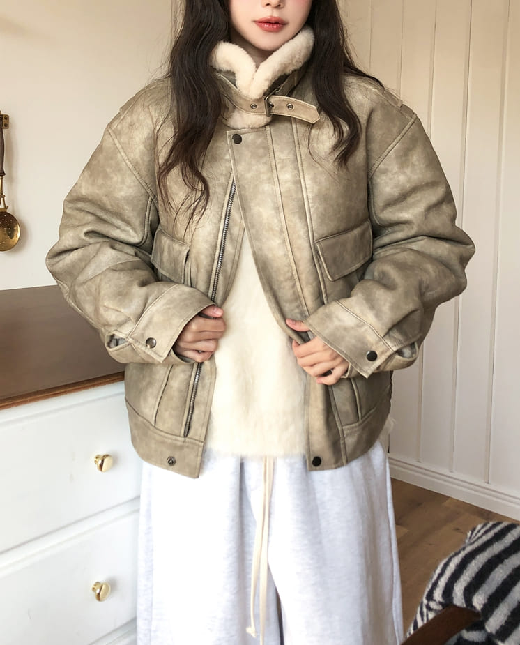 ベティウォッシュ加工ハイネックバックルムートン