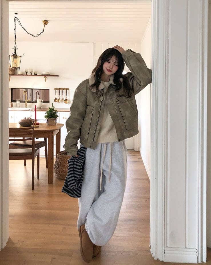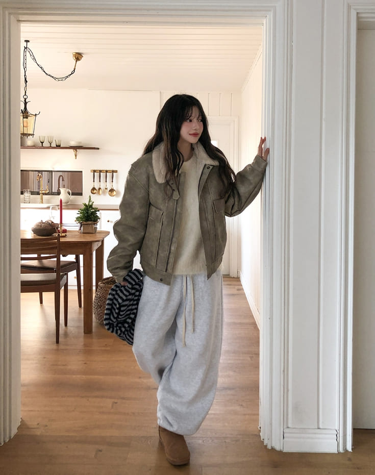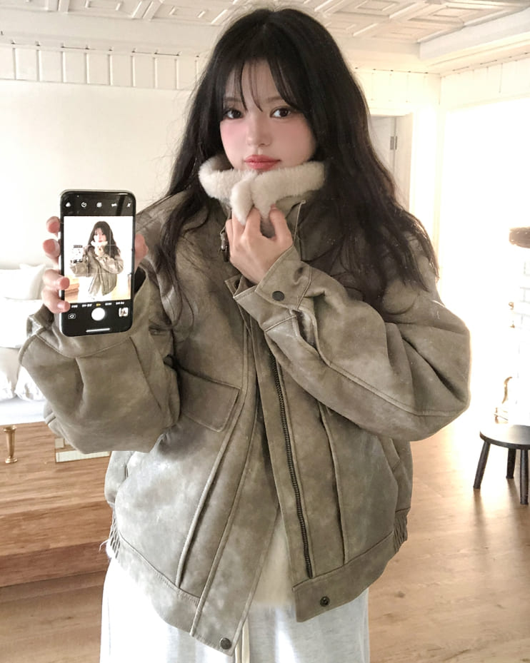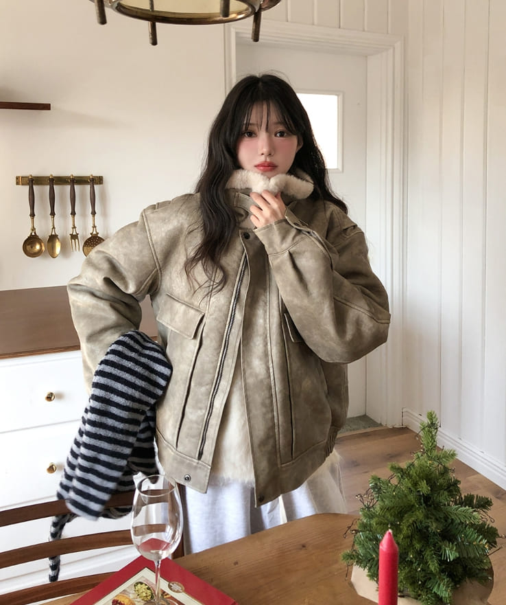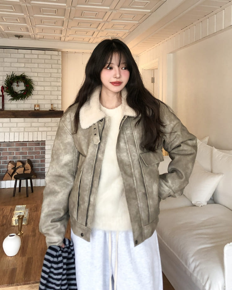 ベティウォッシュ加工ハイネックバックルムートン