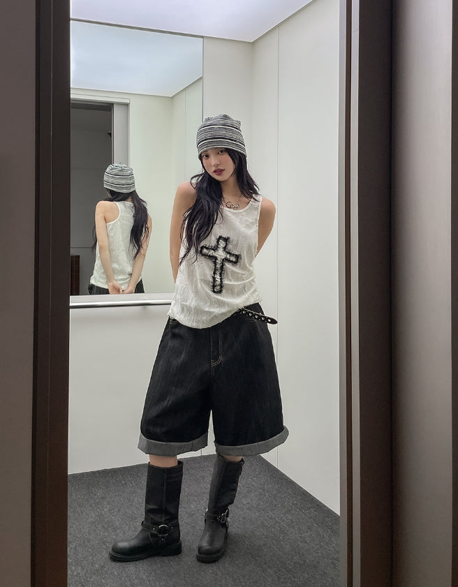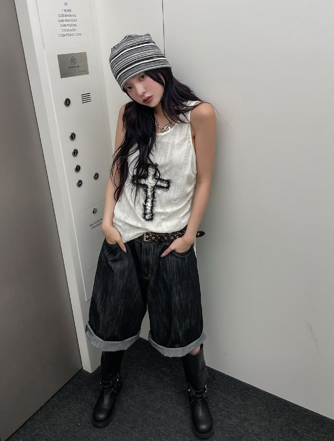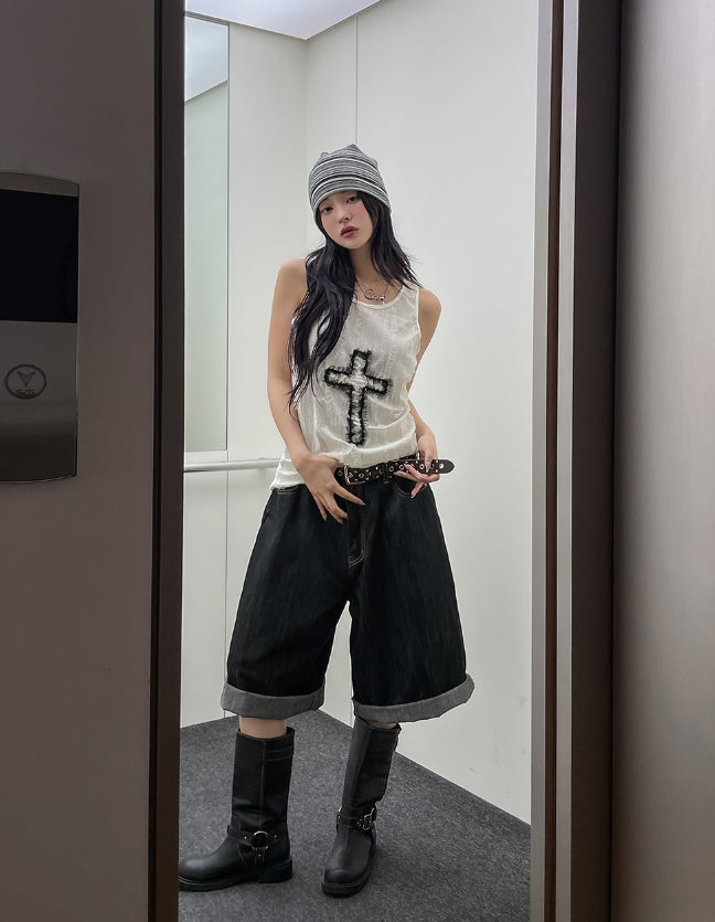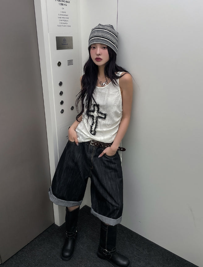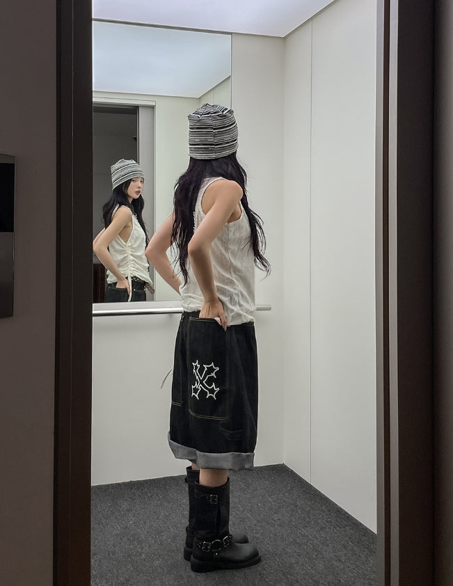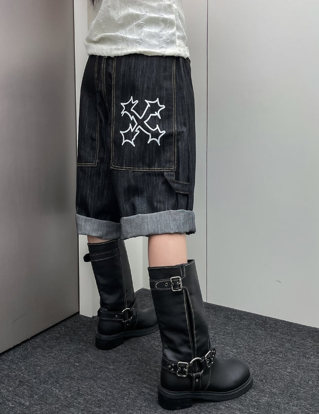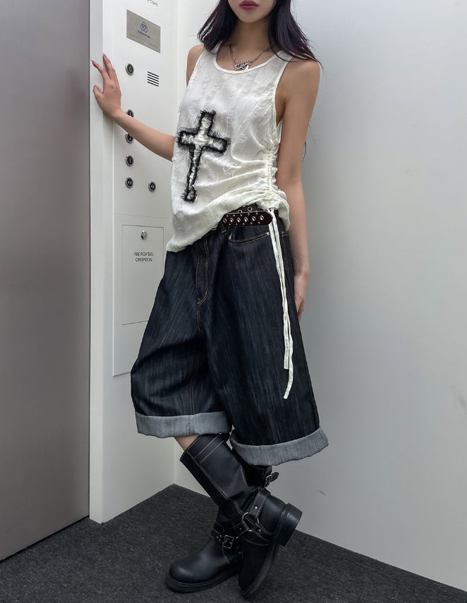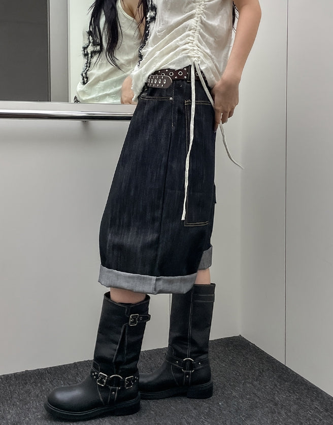 ビッグポケットカーフェンダーノンフェード8分丈デニムパンツ