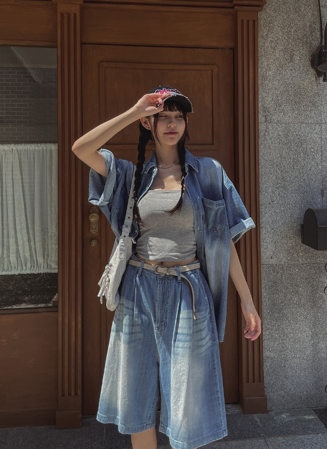 Blitz Cool Denim Bending Pants (Shorts ver.)